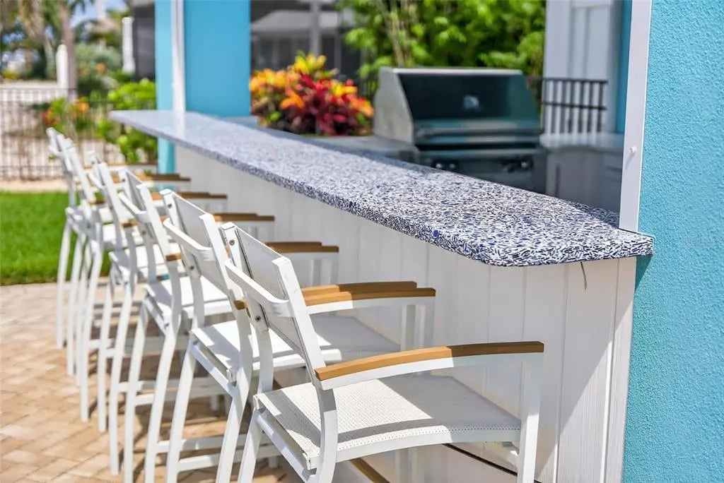 - Exterior FeaturesAwning(s), Irrigation System, Lighting, Outdoor Grill, Outdoor Kitchen, Sliding Doors, Sprinkler Metered