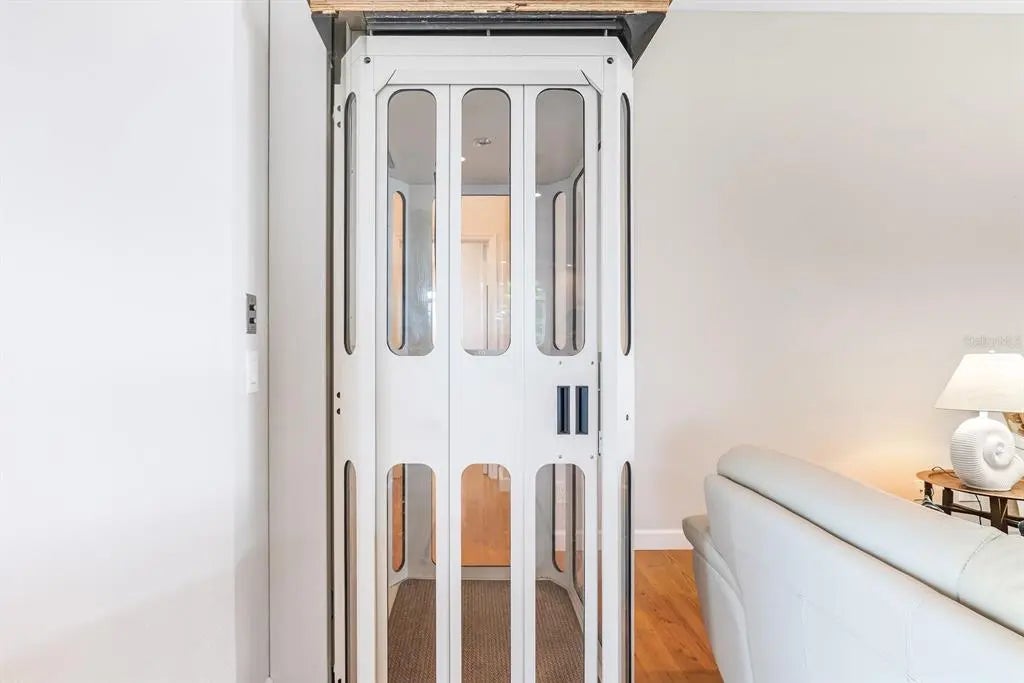 - Interior FeaturesCeiling Fan(s), Elevator, High Ceilings, Living Room/Dining Room Combo, Open Floorplan, Solid Surface Counters, Solid Wood Cabinets, Walk-In Closet(s), Window Treatments