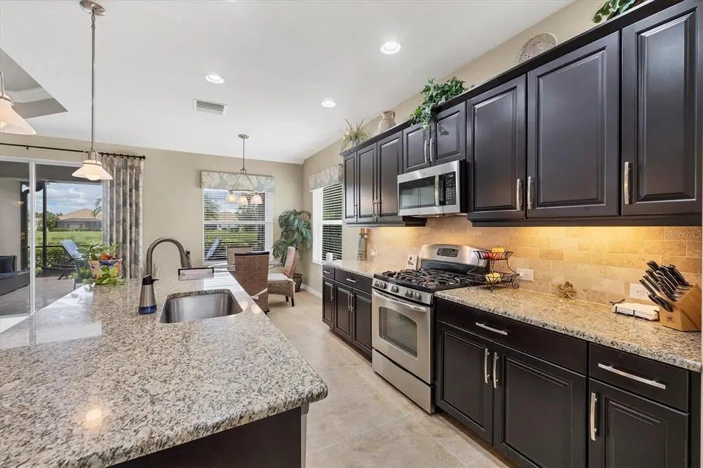Under contract-accepting backup offers. Welcome Home! Step inside this meticulously maintained residence and immediately notice the pride of ownership throughout. Nestled in the highly sought-after, amenity-rich community of Grand Palm, this home offers more than just comfort—it offers peace of mind. With no CDD fees (fully paid by the seller) and no flood zone designation, you can truly enjoy carefree living. This thoughtfully designed Great Room floor plan features a split bedroom layout, ensuring privacy for both owners and guests. Easy-to-maintain hard surface flooring throughout adds to the home’s fresh, clean appeal. Both guest bedrooms are generously sized, with one featuring a custom-built Murphy bed for added versatility. The Primary Suite boasts serene lake views and an ensuite bath complete with a large walk-in shower. At the heart of the home, the open kitchen shines with stainless steel appliances, granite countertops, abundant cabinetry, and a sought-after natural gas range—perfect for cooking enthusiasts. Sliding glass doors flood the Great Room with natural light and open onto the extended lanai, where tranquil lake views create an ideal setting for relaxation or entertaining. Life in Grand Palm means living like you’re on vacation every day. Enjoy miles of picturesque nature trails, a resort-style pool with waterslide, a lap pool with tiki hut lounge, and a beach-entry pool at the social club. Stay active with a fully equipped fitness center, studio classes, basketball, sand volleyball, bocce ball, and both indoor climate-controlled and outdoor pickleball courts. Families will love the splash park, while pet owners will appreciate the two dog parks. For outdoor enthusiasts, there’s kayak storage and launch access. Plus, with an on-site lifestyle director, social events and community gatherings are always just around the corner. All this, and you’re only minutes from Venice’s historic downtown, pristine Gulf Coast beaches, and the vibrant new Downtown Wellen Park. Don’t miss your chance to make this lakeview retreat your own—start your Gulf Coast story today!