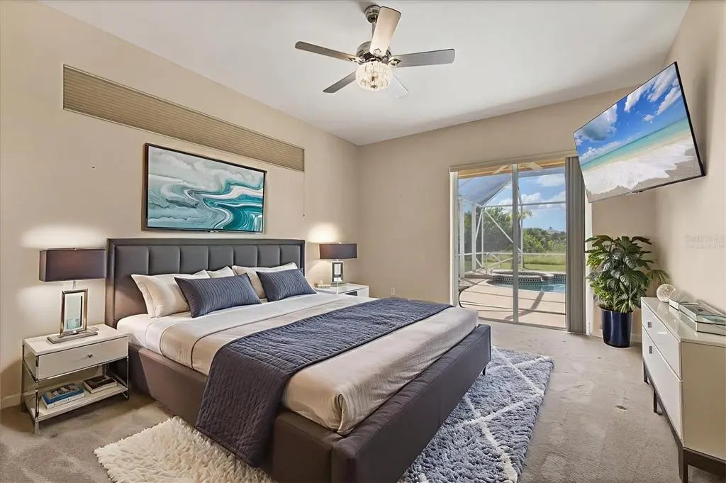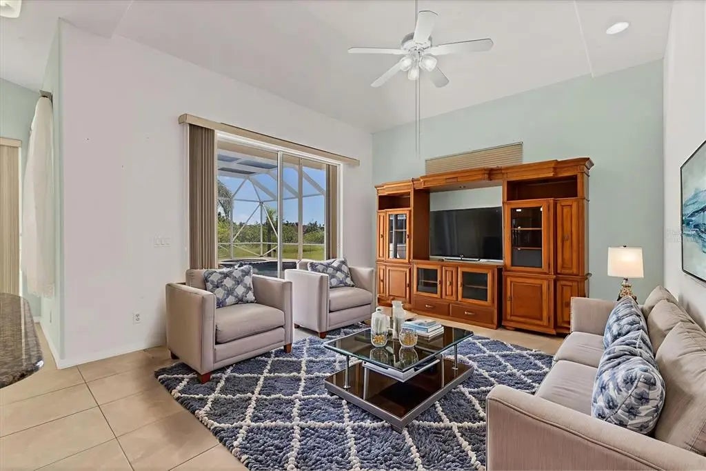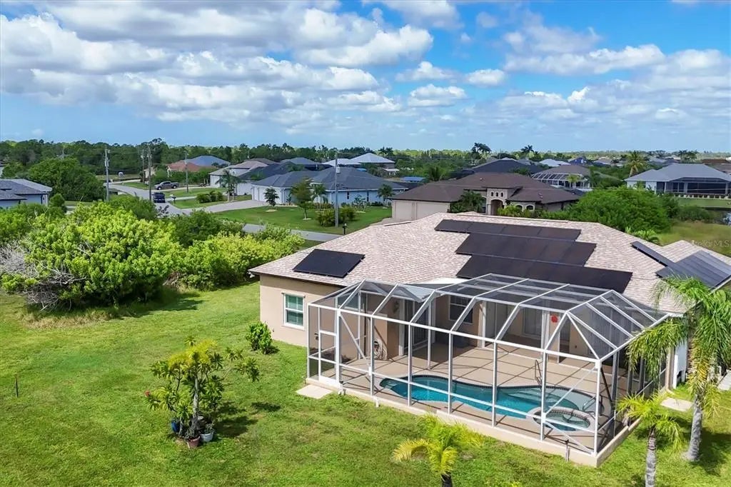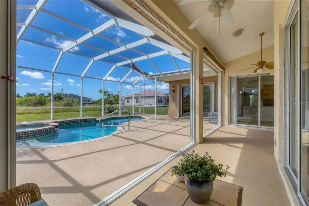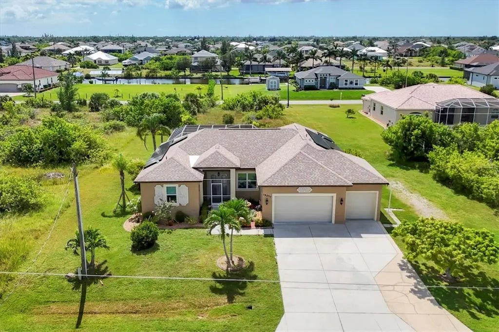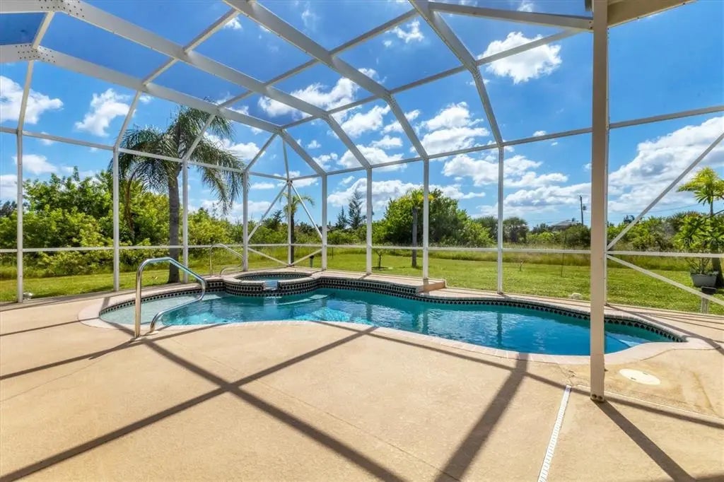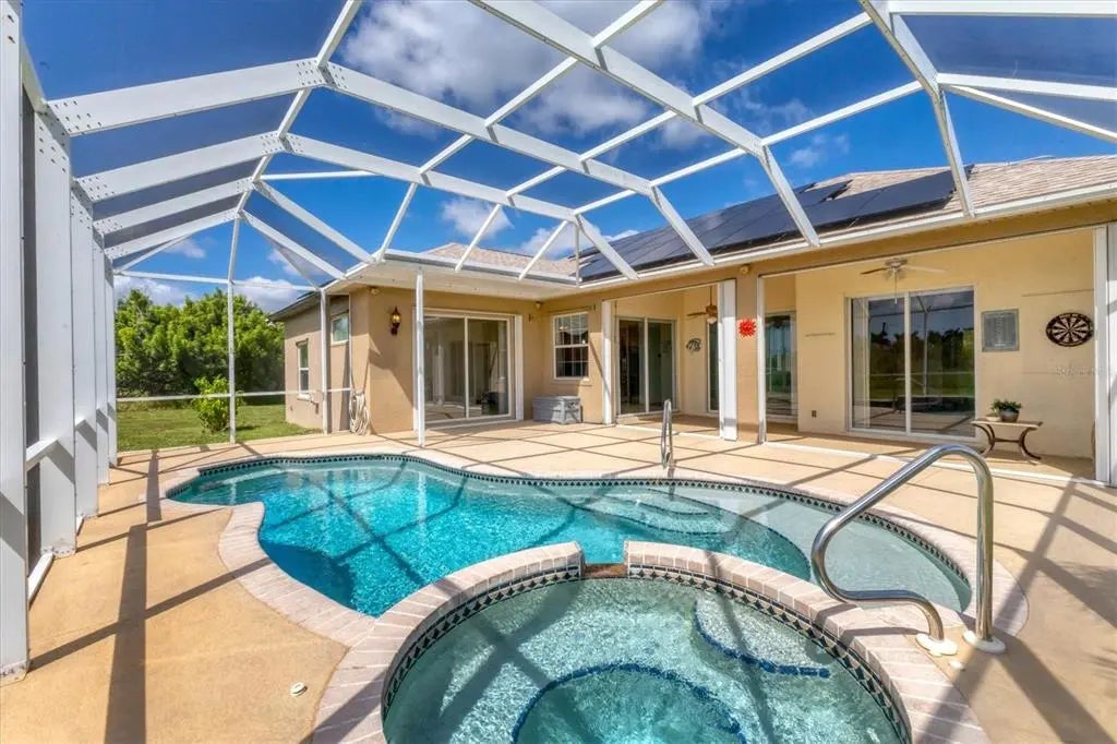 One or more photo(s) has been virtually staged. This stunning home in Southwest Florida’s vibrant, waterfront community of South Gulf Cove offers a perfect blend of comfort, and style. Featuring three spacious bedrooms and two modern bathrooms, the 2,044 square-foot residence is designed for both relaxation and entertaining. The heart of the home is the beautifully appointed kitchen, equipped with granite countertops, wood cabinetry, and tiled floors that extend throughout the living areas, complemented by freshly cleaned carpets for added comfort in two of the bedrooms. The bathrooms have been thoughtfully updated with new vanities and tiled showers, while the primary bathroom boasts dual sinks, a jetted tub, and a private water closet, creating a luxurious retreat. Outside, enjoy the heated SALTWATER POOL, ideal for year-round enjoyment. Pleasantly landscaped to enhance the home’s welcoming curb appeal. Practical upgrades include a newer roof, solar panels (assumable lease to new buyer), offering energy efficiency and peace of mind, updated bathrooms, most windows upgraded to hurricane impact and have shutters, 2022 new HVAC system, and the Lanai is fitted with accordion shutters. South Gulf Cove is a desirable waterfront community located just off the Myakka River, known for its scenic parks, sidewalks, and a community boat ramp perfect for the boating enthusiasts. Residents can choose to join the optional homeowner’s association, which helps maintain the neighborhood’s charm and amenities. This home combines modern convenience with the beauty of Southwest Florida’s coastal lifestyle, making it an exceptional opportunity for buyers seeking a move-in ready residence with ample living space to make growing memories. 15077 Acorn Circle is a MUST see. Call Today!