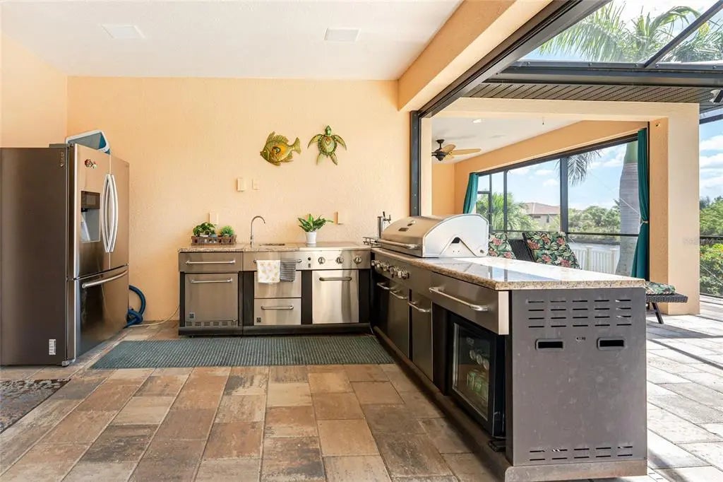 - Exterior FeaturesHurricane Shutters, Irrigation System, Lighting, Outdoor Grill, Outdoor Kitchen, Outdoor Shower, Rain Gutters, Sliding Doors