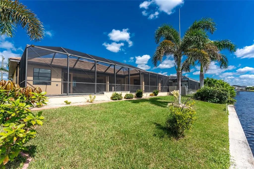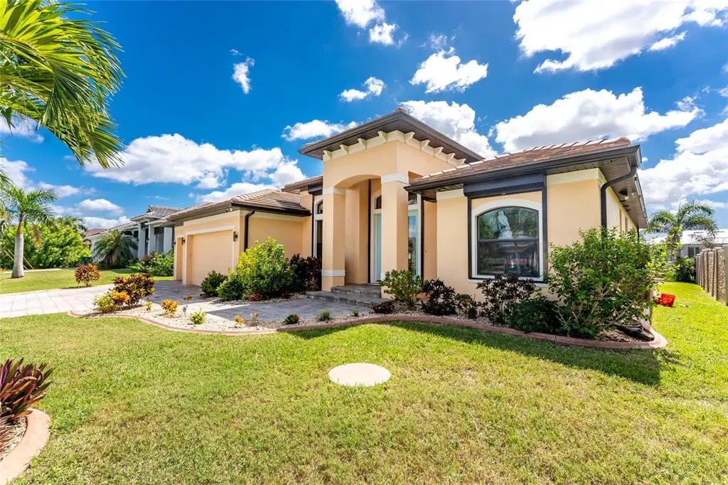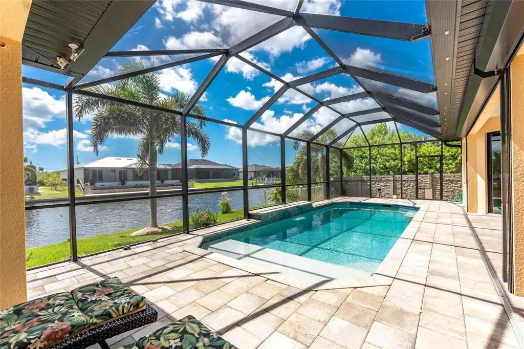 Motivated Seller.......Step into unparalleled luxury with this Gulf-access waterfront pool home in South Gulf Cove. Enter thru beautiful custom glass French doors to breathtaking south-facing canal and pool views with direct boating access to Charlotte Harbor and the Gulf of Mexico. The opulent interior truly captivates and offers a great entertaining space. Blue Stream high-speed fiber and transferable low-cost flood insurance are available. Offered partially furnished, the home features an open split floor plan with 3 bedrooms, 3 full bathrooms, including one with pool access, and a flex office/den with French doors. High tray ceilings, crown molding, abundant natural light, and Low-E hurricane-impact windows enhance the spacious feel. The chef’s kitchen with additional coffee/wet bar is designed for both function and elegance. It boasts Samsung stainless steel appliances, a massive angled island, granite countertops, solid wood soft-close cabinetry with Rev-A-Shelf swing-outs, copper prep sink, and a swing-up stand mixer shelf with outlet. A convection oven, fast-boil cooktop, dual timers, touch faucet, and 2024 refrigerator add convenience. The kitchen and living area flows seamlessly thru 4-panel sliding doors to the dual lania. The primary suite is a serene retreat with oversized slider to the pool, tray ceiling, and spa-inspired ensuite. The bathroom showcases dual vanities, a walk-through porcelain tile shower with dual showerheads and full-length granite bench, and a 6-foot light therapy spa tub with jets, bubbles, heater, Bluetooth, and chroma therapy. Enormous walk-in closet designed by Tailored Living with cabinetry, shelving, and drawers. Guest accommodations are equally impressive. Both large rooms provide walk-in closets and are separated by a full bath! One guest bedroom includes its own 3rd ensuite bath with pool access and slider to the lanai creating a private retreat. Outdoor living is a showstopper. A full-length pavered lanai with 2 seating areas, surround sound, recessed lighting, ceiling fans, and outlets overlook the heated pool with waterfall, sun shelf, removable child safety fence, and outdoor shower. The summer kitchen offers granite counters, hot water sink, grill, griddle, burners, refrigerator, freezer with ice maker, beverage cooler, and kegerator. A Fenced yard with pet door and seawall w/water and electric adds convenience. Many value-added upgrade enhancements give comfort and peace of mind: Electric roll-down storm shutters, generator transfer switch, whole-house water treatment with reverse osmosis in the kitchen/bar, new water heater, central vacuum, wood closet shelving, washer and dryer with steam, I-Wave C UV air purifier, surround sound, custom blinds and remote-control shades, Taexx in-wall pest control, Rainbird irrigation, Honeywell WiFi thermostat, and advanced wired security. Exterior enhancements continue the luxury theme with a 2023 designer concrete tile roof with solar vent fans, fresh paint, Simtek rock-face vinyl fencing, custom curbing and mature landscaping. The full 3-car garage offers built-in storage shelving and wash sink. The home is ideally located minutes from Boca Grande, Manasota Key multiple beautiful beaches, golf courses, restaurants, and entertainment. This is more than just a home—it’s luxurious waterfront living, blending indoor elegance with outdoor beauty in one of Florida’s most desirable boating communities.