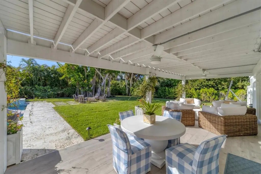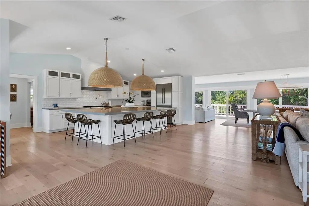 3 bedroom 2 ½ bath home in the Golden Beach section of Boca Grande on an oversized and fenced in 15,000 sq ft lot! Offered furnished with all new designer furniture! Thoughtfully built to enjoy the Florida lifestyle year-round, with open indoor space and expansive outdoor areas. Walk into the main room with a cathedral ceiling and a wall of sliders allowing in lots of natural light! The open floor plan includes a custom kitchen with a breakfast nook, a 6 burner Thermador gas stove with double ovens, and a large island! The living room has a gas fireplace, and the dining area overlooks the private lot with a bonus den area. The new pool has a hot tub, and the fire pit is the perfect spot for night entertainment! Constructed with impact windows, engineered hardwood floors and a metal roof, with details that include plantation shutters, electric screens on the rear doors, and complimented with furniture perfectly placed by an interior decorator! Beach access is a short walk away and the biking/golf cart path leads you to town in minutes to enjoy the restaurants, shopping, and community events!