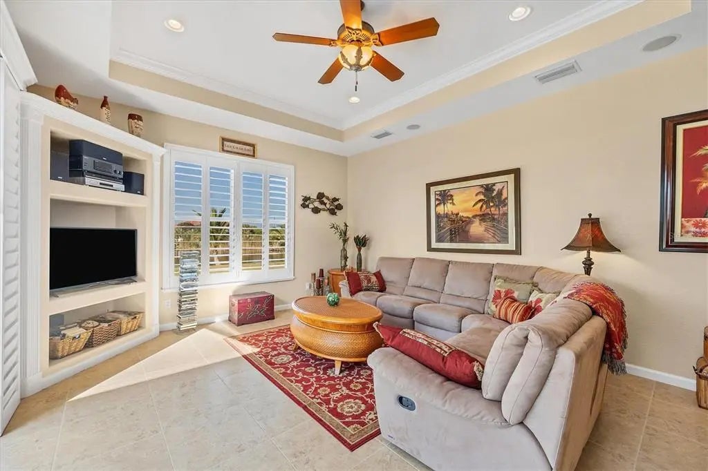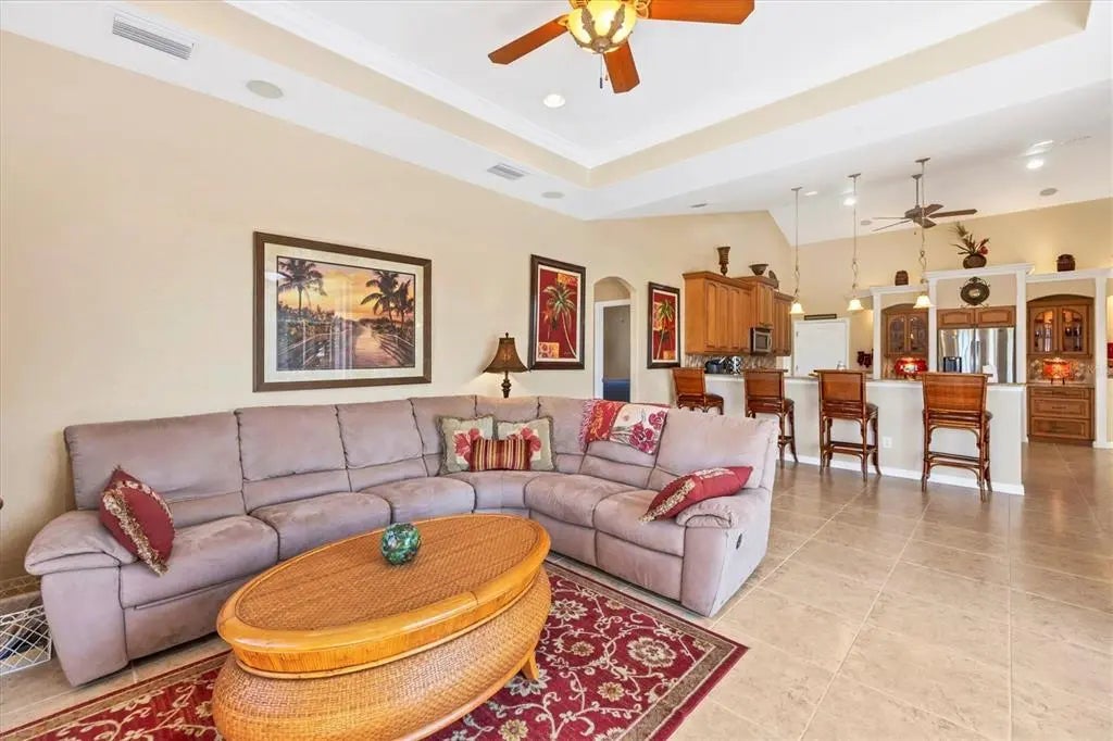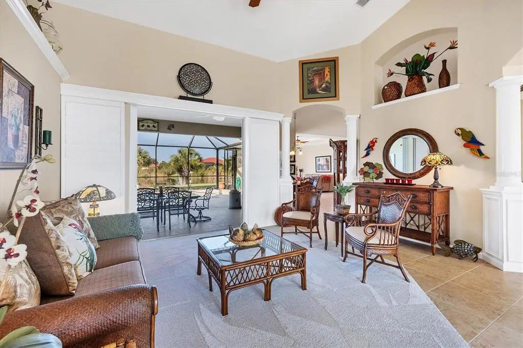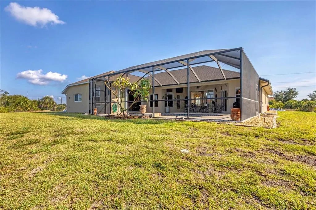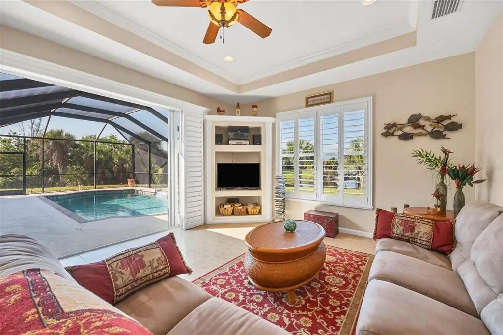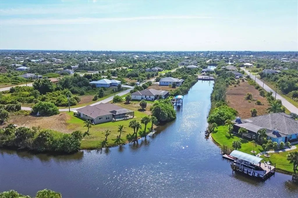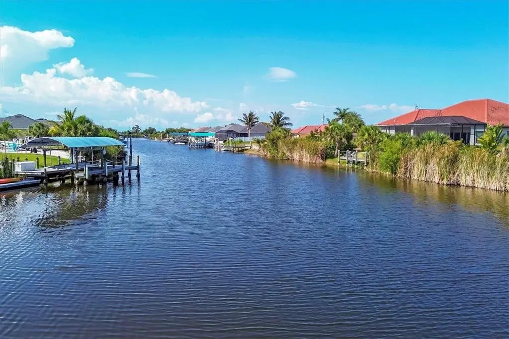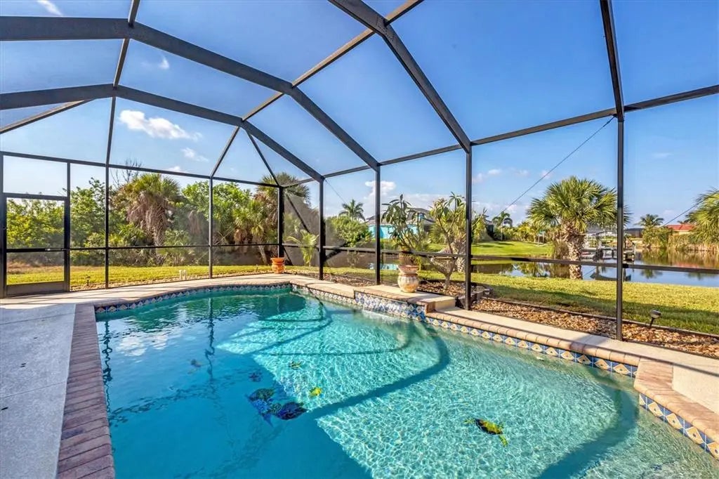 Imagine yourself living on this gorgeous Southwest facing tip lot on open SAILBOAT water, the possibilities for this property are endless. The water views and the sunsets are absolutely stunning with 166 ft. of water frontage. As you walk through the leaded glass double door, you will notice the natural light and your eyes will be drawn to the architectural details through out. If entertaining is on your agenda, this home consists of an open split floor plan and has plenty of room to meet all your needs. This home features a formal living room with sliders accessing the lanai, family room with sliders accessing the lanai, bonus room, and breakfast nook all sharing the breathtaking waterfront views. This spacious kitchen is sure to please any chef in the family featuring all wood cabinets, plenty of storage in the center island, granite countertops, stainless steel appliances, eat at bar, breakfast bar and a beautiful walk in pantry to house all your cooking supplies. The laundry room, consisting of plenty of storage cabinets with a cabinet and sink, is located off the kitchen and can also be accessed through the garage. Perfect for when you are doing those outside projects and want to clean up before you walk through the home. The spacious guest bedrooms share a guest bathroom with tub and shower, and granite counters. The oversized main bedroom, located on the opposite side of the house for privacy, features glass sliders that go out to the lanai, a private main bathroom that contains a walk in tiled shower, jetted soaking tub, and dual sinks with granite counters and plenty of storage. The lanai area is accessed though the sliders from the living room and formal living room which gives you both inside and outside entertaining space. Float in your 22 x 13 pool to cool off, sit and read a book or watch your favorite tv show in the covered lanai area. Because of the size of the outdoor space, picture adding on to your outdoor oasis with an outdoor grilling area, tiki hut, add a stand alone spa, etc. Use your imagination because this property has the space for it all. The oversized two car garage features plenty of cabinet space for storage and can accommodate a golf cart or other toys you may have. Other highlights are the plantation shutters, tons of storage, architectural niches, new roof (2022), Impact windows and or shutters, and irrigation pulling from the canal. The location of South Gulf Cove in itself is close to some of the most beautiful beaches, Boca Grande, golf courses, some of the best fishing in Charlotte Harbor and the Gulf of Mexico, and let's not lose sight of the 55 miles of waterways through the canals. Picture yourself here, a waterfront paradise, and make your dreams come true.