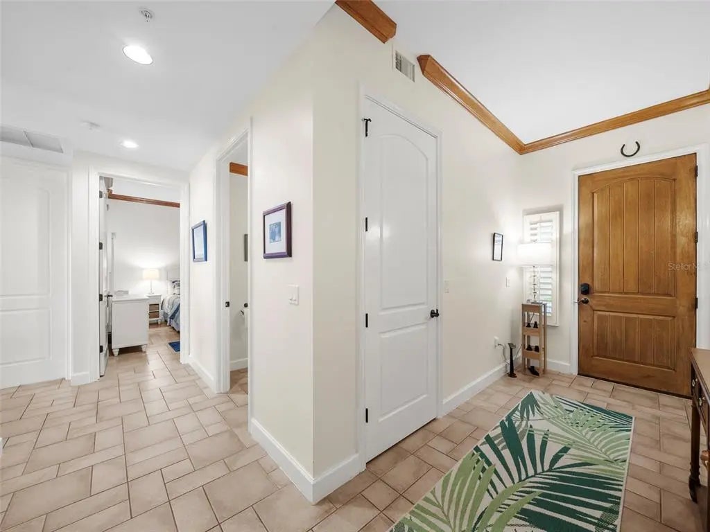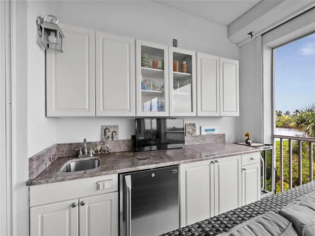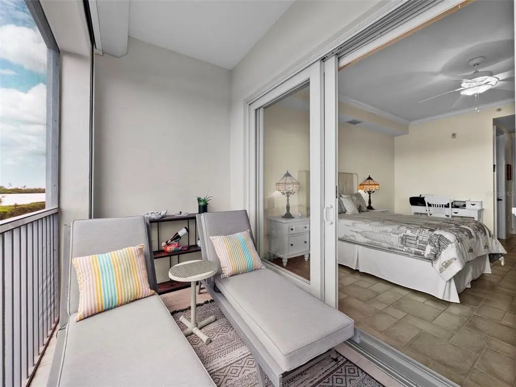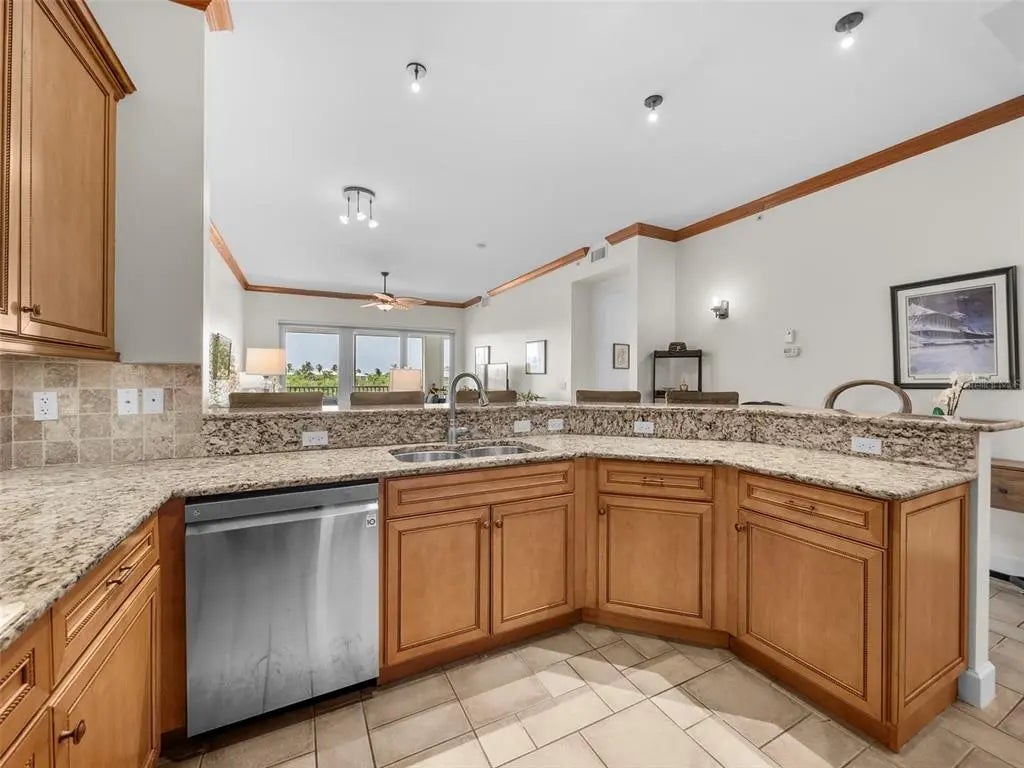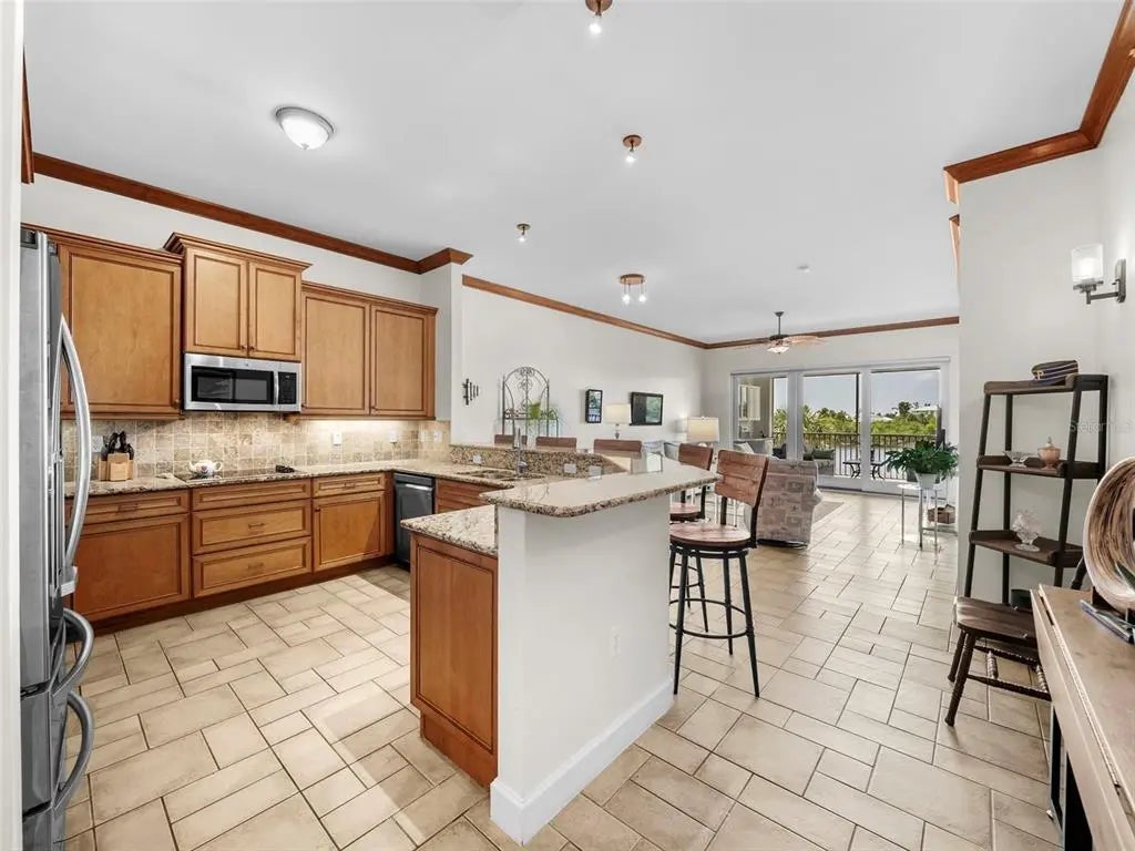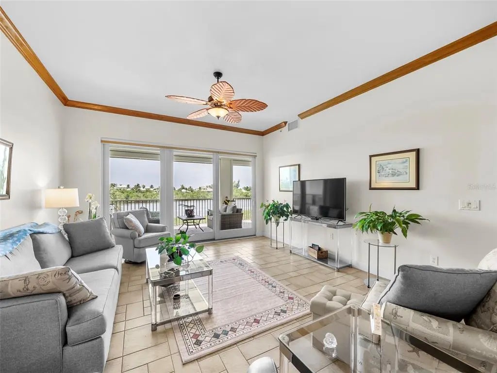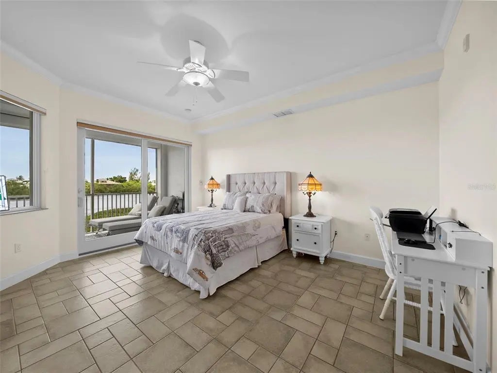 Welcome to this exquisite two-bedroom, two-bathroom condo in the coveted Hacienda Del Mar community. Ideally situated in the closest building to the Intracoastal Waterway, this residence offers an immersive coastal Florida lifestyle. The condo is superbly maintained and features premium finishing's and robust construction quality. Throughout the property, you'll find elegant French pattern porcelain tile flooring, there's a large gourmet kitchen, complete with granite countertops, a beautiful tile backsplash, custom wood cabinetry, and stainless steel appliances. The bathrooms are elegantly appointed with deluxe plumbing fixtures, crown molding throughout; the great room showcases classic stained crown molding, while the other rooms feature a soft white finish. The spacious bathrooms offer distinctive marble counters, custom cabinetry, and gorgeous showers, with the master bath including a large soaking tub. The outdoor kitchen is well-equipped with high-quality cabinetry and a beverage fridge. The residence offers 10-foot ceilings, 8-foot solid core doors and all Andersen impact-resistant sliders and windows, plus motorized hurricane shutters on the lanai for added peace of mind. A new AC system was installed in September 2024 and water heater in October 2023. Many furnishings are negotiable, that can make settling into this property even easier. Hacienda Del Mar boasts spectacular tropically landscaped grounds and a range of incredible amenities, including two large swimming pools, a spa, stunning waterfront clubhouse, tennis and pickle ball courts, a fitness center, day dockage, a massive fenced-in dog park, and paver sidewalks throughout the approximately 23-acre property. The location is convenient, with walking distance to the ferry to Palm Island and close proximity to historic Boca Grande, full-service marinas, world-class fishing and boating, as well as dining, shopping, and miles of pristine sandy beaches.