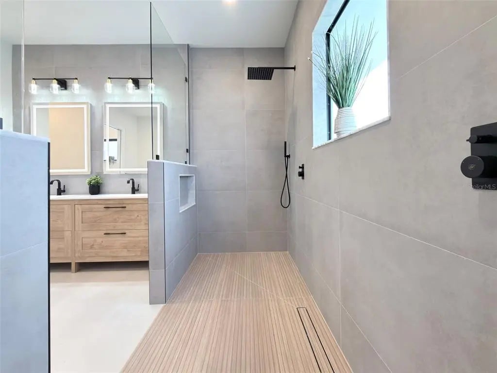 - Exterior FeaturesFrench Doors, Irrigation System, Lighting, Outdoor Shower, Private Mailbox, Sliding Doors