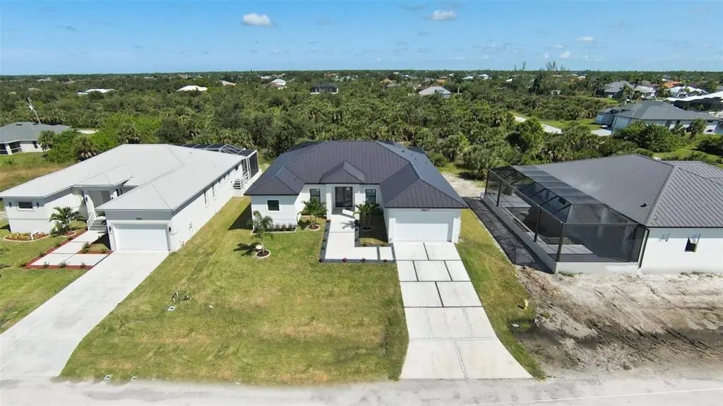 Seller to Contribute up to $20,000 Towards Closing Cost. This New Construction Home is in the Great Community of South Gulf Cove, a Waterfront Community. This home offers 4 bedrooms and 4 full bathrooms. This home features Solid Wood Kitchen Cabinets, Stainless Steel appliances, 10 ft long Kitchen Island with Waterfall Quartz Countertops. The Great Room has plenty of space for a Formal Dining Table, Living Room and Breakfast Area. The Master Bedroom is Private and has plenty of Closet Space. Its Master Bathroom is spectacular, The Shower is extremely spacious and easily accessible, the shower comes with his and hers Shower. Private Toilet Room with Bidet. Enjoy the Bathtub for a relaxing day and connect to the Bluetooth to enjoy your favorite Music. The Outside Area features Covered Lanai, Exterior Full Bathroom, Panoramic Cage, Pool Deck, Private Pool 12x32 with Beach Entry with umbrella Holder and 12ft long Bench swim out on the deeper side. Outside Area Fully Tiled with anti-slippery Porcelain Tile, come enjoy 1660 sq ft of exterior built finished area great for any family or event. Irrigation system installed all around the home to take of of the landscape. The Home was built on Stem Wall Foundation and CBS Construction. The home and its 2-Car Garage have been elevated above Flood Elevation. Also, the home's Metal Roof, Hurricane Windows and Doors and security system will give you plenty of saving on your home insurance. The Community HOA is voluntary and the Community offers community docks and parks. This home is ready to move in it is and easy to show.