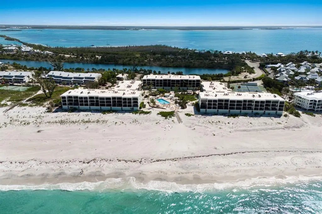 Step into a world of coastal elegance and comfort on Boca Grande’s most coveted stretch of beach. This beautifully appointed 2-bedroom, 2-bath corner condominium is nestled within a pristine, gated community—offering both privacy and a sense of belonging. From the moment you enter, you’ll be captivated by the serene views through lush tropical courtyards out to the Gulf, setting a tranquil backdrop for daily living. As a corner residence, the home is bathed in natural sunlight, with extra windows brightening the kitchen and master suite—creating an airy, uplifting atmosphere. The expansive floor plan flows effortlessly, featuring spacious living areas that invite you to unwind or entertain in style. Enjoy your morning coffee or evening gatherings at the charming breakfast bar, which seamlessly connects the dining area to the heart of the home. One of the property’s most enchanting features is its double screened lanai design—offering two generous outdoor living spaces. Here, you can savor gentle Gulf breezes, bask in quiet mornings, or host friends against a backdrop of swaying palms and tranquil sea air. Practicality meets luxury with first-floor access above secure under-building parking and a private storage closet—perfect for your beach gear or personal treasures. The building’s crisp white exterior, accented by bluish-green HardiePlank siding, highlights its timeless coastal appeal. Step outside to discover a resort-style courtyard: unwind by the heated swimming pool and spa, soak up the sun on the expanded deck, or enjoy al fresco dining in one of two BBQ areas. For the active at heart, upgraded tennis courts and convenient elevators add to your ease and enjoyment. Dedicated on-site management ensures peace of mind and a seamless living experience. Just moments away, explore world-class fishing, golf, boutique shopping, and Boca Grande’s celebrated dining—all at your fingertips. Experience the lifestyle you deserve in this exceptional Gulf-front retreat—where every day feels like a getaway. Schedule your private tour today and discover the warmth, beauty, and exclusivity that await you!