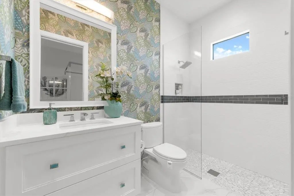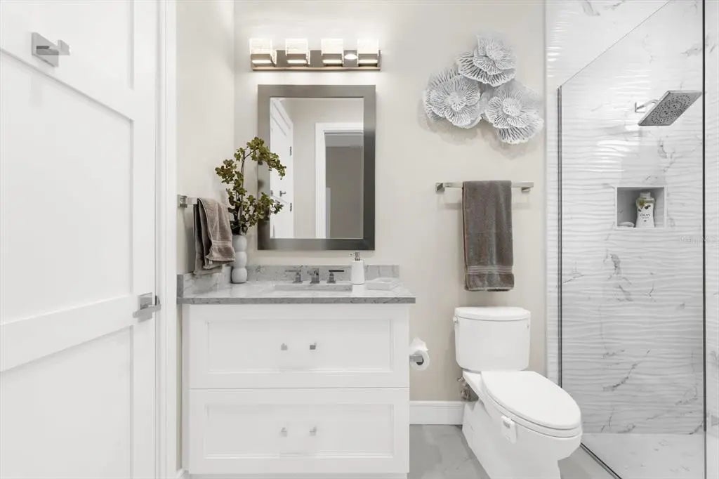 - Exterior FeaturesIrrigation System, Lighting, Outdoor Grill, Outdoor Shower, Rain Gutters