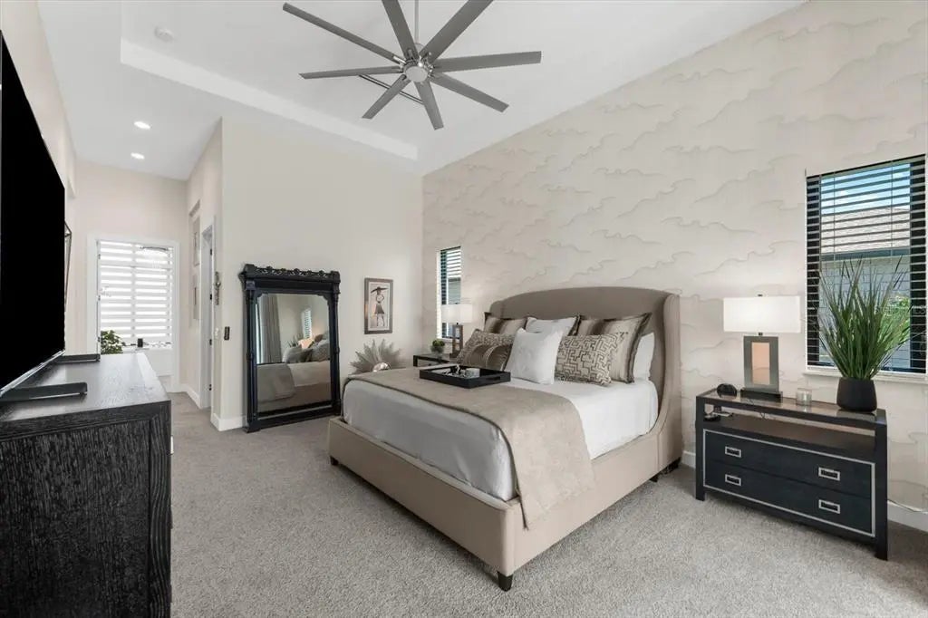 - Interior FeaturesBuilt-in Features, Ceiling Fan(s), Coffered Ceiling(s), Crown Molding, Eating Space In Kitchen, High Ceilings, Open Floorplan, Solid Surface Counters, Solid Wood Cabinets, Thermostat, Walk-In Closet(s), Wet Bar, Window Treatments