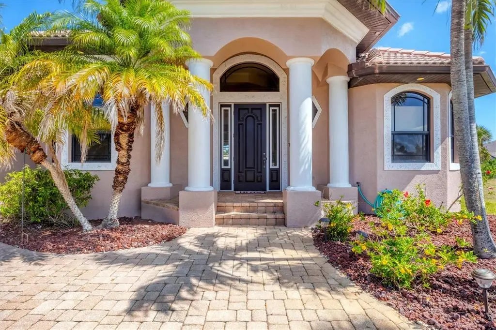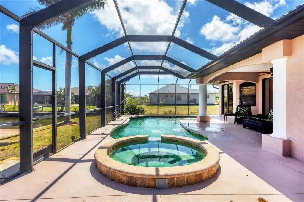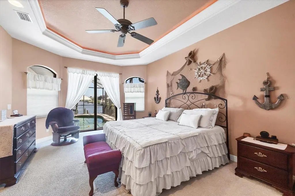 WATERFRONT POOL HOME WITH DOCK & 16K COVERED BOAT LIFT! This thoughtfully designed 3-bedroom, 3-bath, 3-car garage canal-front home offers a solid layout, beautiful views, and plenty of potential to make it your own. INTERIOR FEATURES & LAYOUT Enjoy expansive water views the moment you walk in. The light-filled open floor plan flows easily through the great room, featuring detailed tray ceilings, ambient rope lighting, and multiple sliding glass doors that open to the lanai and pool. The window in the dining area and the sliders have tint for added comfort and energy efficiency. A spacious den or flex room near the entry is perfect for a home office, hobby space, or library. Split bedroom plan with door to guest wing-guest bedrooms can be closed off from the main living areas, offering privacy for family or friends. GOURMET KITCHEN & ENTERTAINING The upgraded kitchen is designed for both everyday living and entertaining. It features custom cabinetry, stainless steel appliances, granite countertops, and a large bi-level island with bar seating. Several lower cabinets include wooden pull-out shelves for easy storage and organization. An aquarium-style window in the dining area frames a beautiful water view from your kitchen sink, and the kitchen opens to the great room and dining area, making it ideal for gatherings. PRIMARY SUITE & BATHS The private owner’s suite offers direct lanai access, a walk-in closet, and a spa-inspired bathroom with a jetted tub and an oversized walk-through shower with dual shower heads and controls. Two additional bedrooms and baths provide flexible space for family, guests, or a second office. The third bath also serves as a convenient pool bath, accessible from both the hallway and the lanai. OUTDOOR LIVING & WATERFRONT ACCESS Step outside to your own slice of paradise. The oversized screened lanai features a heated saltwater pool with beach entry, five fountains, and a sun shelf,perfect for lounging and entertaining. The exterior was recently painted and includes concrete curbing, upgraded landscaping, and a circular paver driveway with plenty of parking. For boating enthusiasts, there’s a composite dock with a 16,000 lb covered boat lift and a straight canal view that provides quick Gulf access. A walkway runs from the front of the home to the back along the side, leading to an outdoor shower and a storage closet for pool equipment and accessories. ADDITIONAL UPGRADES & HIGHLIGHTS • IMPACT-RATED WINDOWS AND DOORS • Tinted sliders and dining window • TRAY CEILINGS WITH ACCENT LIGHTING • Tile throughout main areas • Saltwater pool with fountains and sun shelf • OUTDOOR STORAGE CLOSET FOR POOL EQUIPMENT • Outdoor shower and side walkway • CIRCULAR PAVER DRIVEWAY AND CONCRETE CURBING • MANABLOC PLUMBING SYSTEM FOR EFFICIENT WATER CONTROL • Guest bedrooms can be closed off from main living areas • COAT CLOSET, CEILING FANS, AND ATTENTION TO DETAIL THROUGHOUT • OVERSIZED GARAGE DOOR ON THE TWO-CAR SIDE ALLOWS TRUE TWO-CAR PARKING Enjoy the best of Southwest Florida—boating and fishing right from your backyard, or simply unwind with your favorite drink while taking in the peaceful canal view. This home is the perfect combination of waterfront comfort, outdoor living, and move-in ready style.