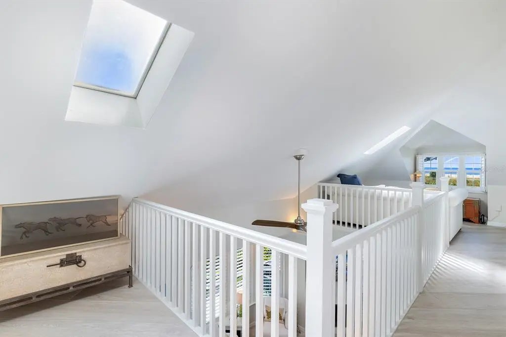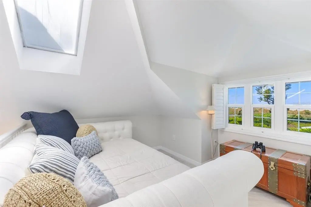 Set along one of the most secluded and beautiful stretches of beach on Gasparilla Island, 22 Seawatch Drive offers refined coastal living in the gated Seawatch community. Surrounded by mature tropical landscaping and overlooking the Gulf, this beautifully renovated residence blends modern coastal design with timeless island character. Light fills the open main living level, where cathedral ceilings and expansive glass capture sweeping Gulf views. A reimagined coastal kitchen and updated baths pair style with function. An enclosed patio with electric screens enhances indoor/outdoor living and opens toward the shoreline. The upper-level primary suite includes a private Gulf-facing balcony, walk-in closet, and spa-inspired bath. A new catwalk connects the suite to a loft-style office and lounge. A flexible additional bedroom provides space for guests, fitness, or creative use. At the top of the home, the signature observation room offers panoramic views from Gulf to bay. Exterior features include a standing seam metal roof, impact windows and sliders, Trex decking, and brick pavers. Smart-home systems allow remote control of lighting, temperature, and water systems. Residents enjoy private beach access, two pools, tennis courts, and a tranquil waterfront setting close to Boca Grande’s village, shops, restaurants, and world-class fishing and boating. 22 Seawatch Drive represents a rare opportunity to own an updated beachfront home in one of the island’s most desirable communities. A move-in-ready property offering Gulf views, modern comforts, and the ease of a turnkey coastal lifestyle.