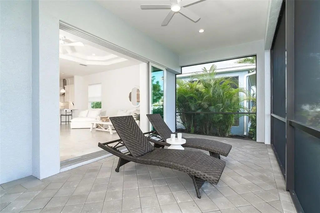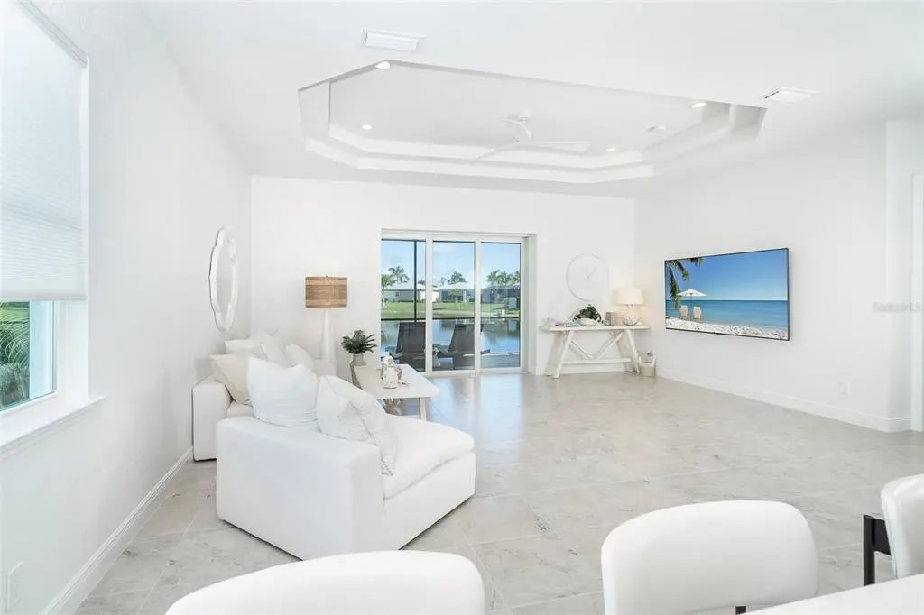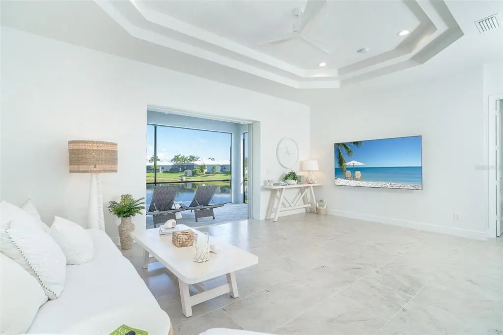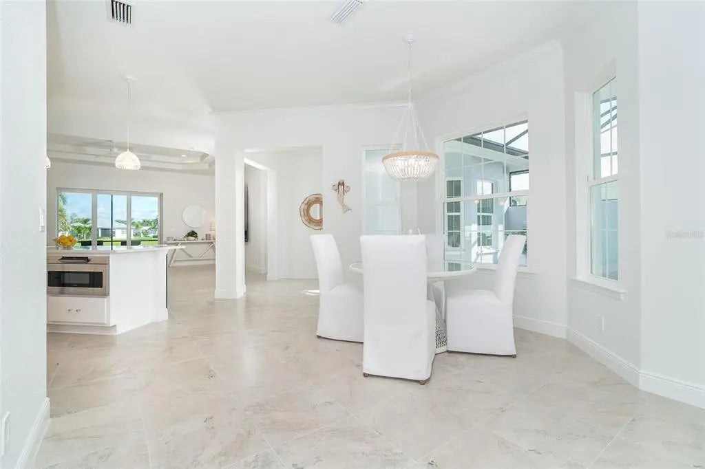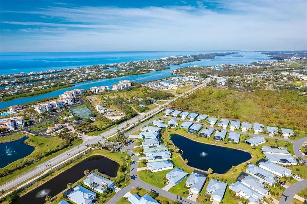 Welcome to your dream home, a stunning courtyard-style residence in the desirable gated community of Coral Caye, just minutes from Boca Grande. Featuring 3 bedrooms and 3 baths, including a separate guest casita. Built in 2023 this property is thoughtfully designed for both privacy and comfort. The interior showcases a gourmet kitchen with white cabinets, pristine quartz countertops, upgraded appliances, and a custom walk-in pantry with a wine cooler. The spacious master suite is a true retreat, complete with his and her walk-in custom closets and an en suite bathroom with a soaking tub, walk-in shower, and double vanity with upgraded LED mirrors. Every detail has been considered with freshly painted interior and exterior spaces, modern lighting fixtures, ceiling fans, new comfort-height toilets, and custom blinds. Durable all-tile flooring extends throughout the home. Step outside into your private oasis, where a heated saltwater pool awaits in the tranquil courtyard. The home boasts breathtaking front/rear water views with a lighted fountain, upgraded landscaping, and enhanced exterior lighting for added charm. Built to current code this home has stem wall foundation with over 13 feet of elevation, metal roof, impact-rated windows and doors that offer added security and energy efficiency. Coral Caye is a highly sought-after gated community with low HOA fees offering resort-style amenities, including a beautiful clubhouse, community pool, pickleball courts, fitness center, and maintenance-free living with lawn care and reclaimed irrigation included. This home is ideally situated for those who enjoy biking, kayaking, boating, fishing, golfing, or simply relaxing on pristine beaches. Schedule your private showing today and experience this exquisite gem for yourself!