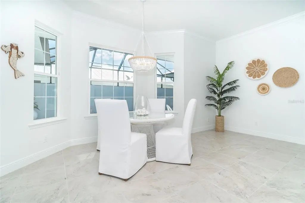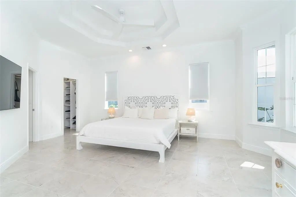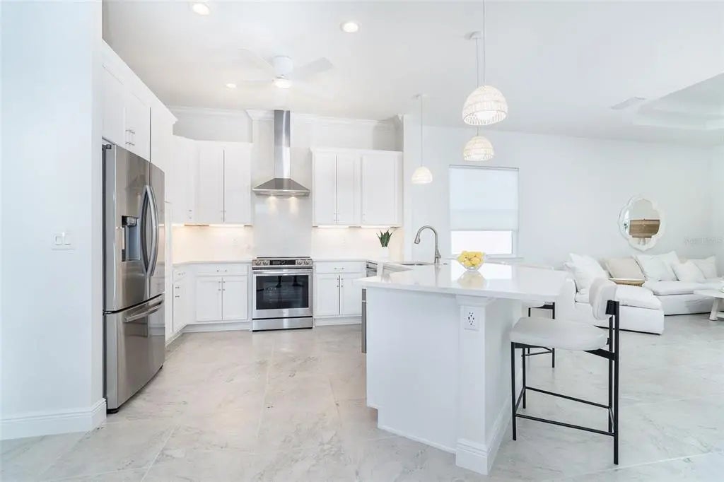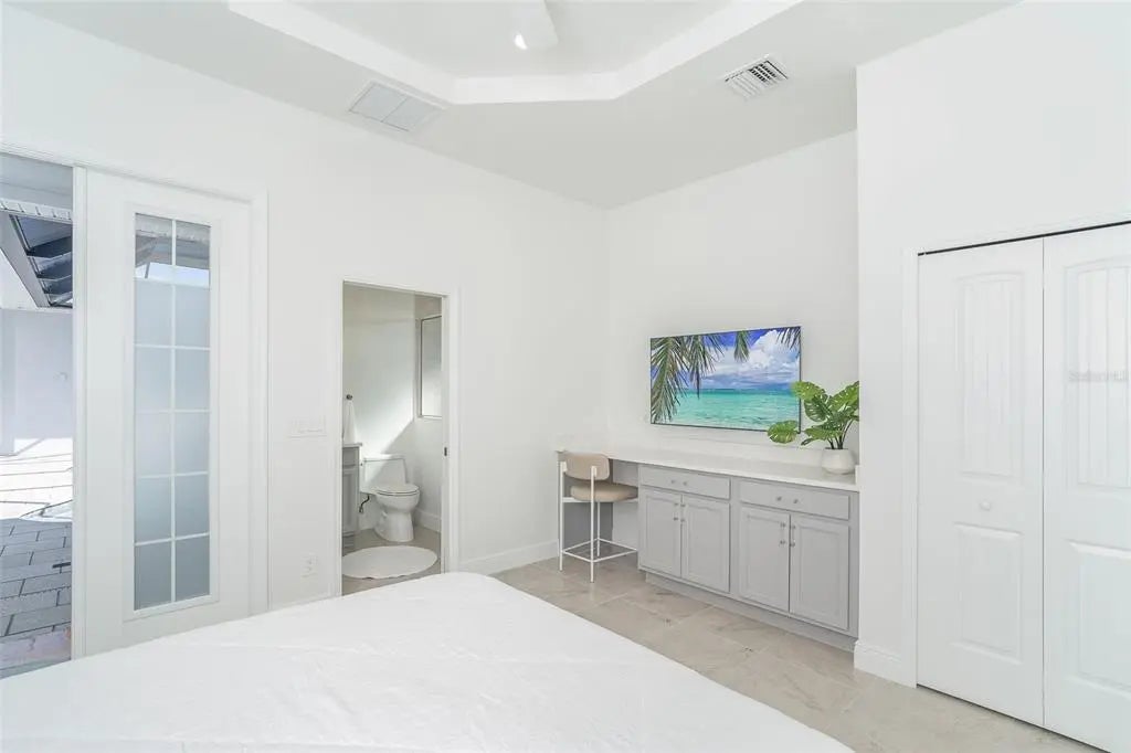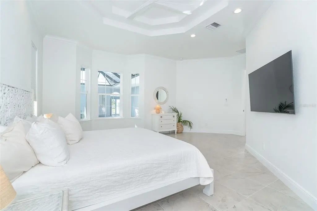Welcome to your dream home, a stunning courtyard-style residence in the desirable gated community of Coral Caye, just minutes from Boca Grande. Featuring 3 bedrooms and 3 baths, including a separate guest casita. Built in 2023 this property is thoughtfully designed for both privacy and comfort. The interior showcases a gourmet kitchen with white cabinets, pristine quartz countertops, upgraded appliances, and a custom walk-in pantry with a wine cooler. The spacious master suite is a true retreat, complete with his and her walk-in custom closets and an en suite bathroom with a soaking tub, walk-in shower, and double vanity with upgraded LED mirrors. Every detail has been considered with freshly painted interior and exterior spaces, modern lighting fixtures, ceiling fans, new comfort-height toilets, and custom blinds. Durable all-tile flooring extends throughout the home. Step outside into your private oasis, where a heated saltwater pool awaits in the tranquil courtyard. The home boasts breathtaking front/rear water views with a lighted fountain, upgraded landscaping, and enhanced exterior lighting for added charm. Built to current code this home has stem wall foundation with over 13 feet of elevation, metal roof, impact-rated windows and doors that offer added security and energy efficiency. Coral Caye is a highly sought-after gated community with low HOA fees offering resort-style amenities, including a beautiful clubhouse, community pool, pickleball courts, fitness center, and maintenance-free living with lawn care and reclaimed irrigation included. This home is ideally situated for those who enjoy biking, kayaking, boating, fishing, golfing, or simply relaxing on pristine beaches. Schedule your private showing today and experience this exquisite gem for yourself!