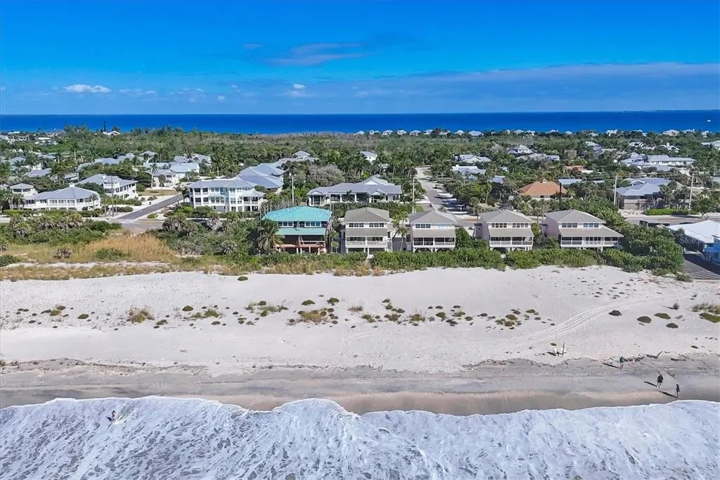 One or more photo(s) has been virtually staged. Newly Constructed Beach Front 3-Bedroom, 3-Bath Gulf-View Townhome Experience luxury coastal living in this brand-new, custom-built townhome! Beginning with engineer-approved original pilings, the home was rebuilt in 2025 with 6-inch exterior framing, ½” sheathing, cement plank siding, foam insulation, Marvin Signature Coastline windows and doors, and a standing seam metal roof—ensuring superior strength, energy efficiency, and durability. Step inside to an open-concept living, dining, and kitchen area, all showcasing stunning Gulf views. Enjoy your morning coffee and spectacular sunsets from your private waterfront open lanai. The interior features tile and wide plank engineered hardwood floors and rift-sawn oak custom cabinetry. The chef’s kitchen boasts quartz countertops, matte white GE Café appliances with brushed bronze accents, and a dedicated bar area with beverage refrigerator—perfect for entertaining. The main-level bedroom includes custom built-ins and access to a full guest bath. Upstairs, the Gulf-front primary suite offers custom cabinetry, and a luxurious ensuite bath with dual sinks accented with bronze fixtures. A spacious third bedroom, also with custom built-ins, and features its own private ensuite bathroom. Other features include solid core doors and a whole house carbon and sediment dual water filtration system and tankless water heater. Over 1,000 additional square feet of covered parking for your car, golf cart and bikes. Every detail has been thoughtfully designed to create a refined coastal retreat just minutes from town, offering quick access to island shops, dining, and community events!