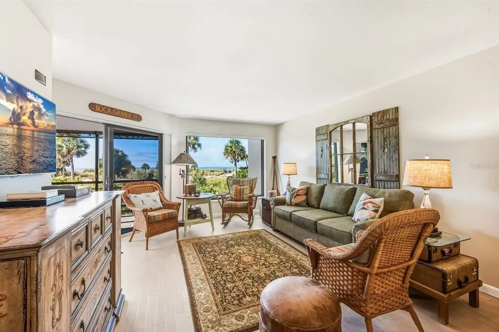 This first floor condo offers beautiful beach views & easy beach access directly from the screened gulf front lanai. Enjoy the refreshing gulf breezes while admiring colorful sunsets. The relaxing coastal vibe sets the tone for the perfect island retreat with one bedroom & one bathroom centrally located to all Boca Grande Club amenities, which include gulf front dining & Tiki bar, 3 pools, state of the art fitness center & 8 tennis courts. Membership initiation & fees required, please inquire for more details.