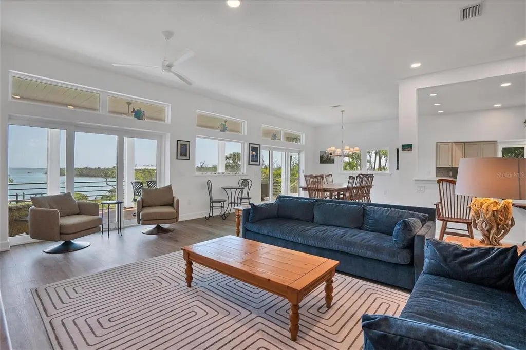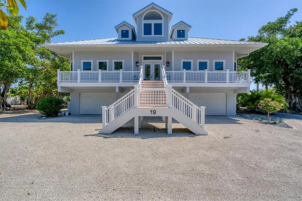 Welcome to 19 Grouper Hole Drive, a captivating waterfront estate in Boca Grande's most sought-after enclave. This residence commands 170 feet of direct frontage on the tranquil waters of Peekins Cove and Gasparilla Sound, presenting a boater's dream with deep-water dockage, a10,000 lb. lift, and kayak or SUP launch. From your private dock, embark on adventures to nearby waterfront dining destinations, fish the areas backwater and Gulf waters, or simply revel in the panoramic views. The expansive heated lap pool provides a refreshing retreat with a pavered deck and a covered sitting area. Step inside and find four generously sized bedrooms, each with renovated bathrooms and a loft area, all designed for comfort and elegance. The chef's kitchen, equipped with a large walk-in pantry, six burner gas Miele oven / range and quartz countertops inspire culinary creativity. Both the living and dining rooms have large impact sliders which open to additional living space and water views! Recent additions include all impact windows and sliders, hardie board siding, composite decking and a new metal roof. The four-car garage provides ample space for vehicles and storage. Situated on an expansive lot-and-a-half, the property creates a park-like setting. A short golf cart ride along the dedicated path leads to the vibrant village of Boca Grande. Enjoy world-class fishing from your doorstep and easy access to multiple private golf courses and the Boca Grande Jet Port, making this exceptional property a true haven of luxury and convenience!