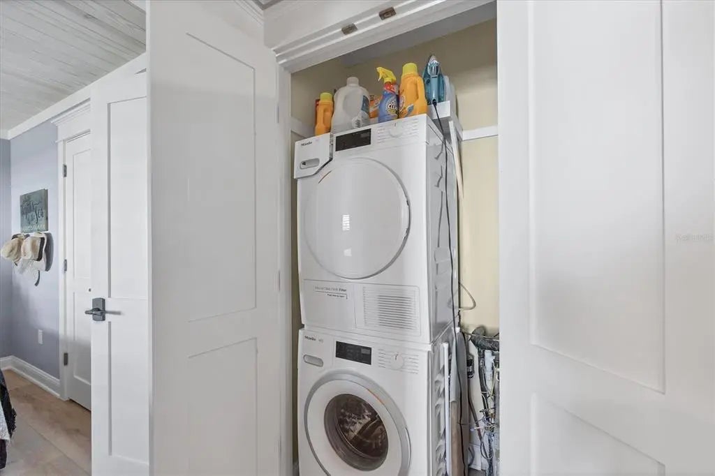 - AppliancesBar Fridge, Built-In Oven, Convection Oven, Cooktop, Disposal, Dryer, Electric Water Heater, Microwave, Refrigerator, Washer