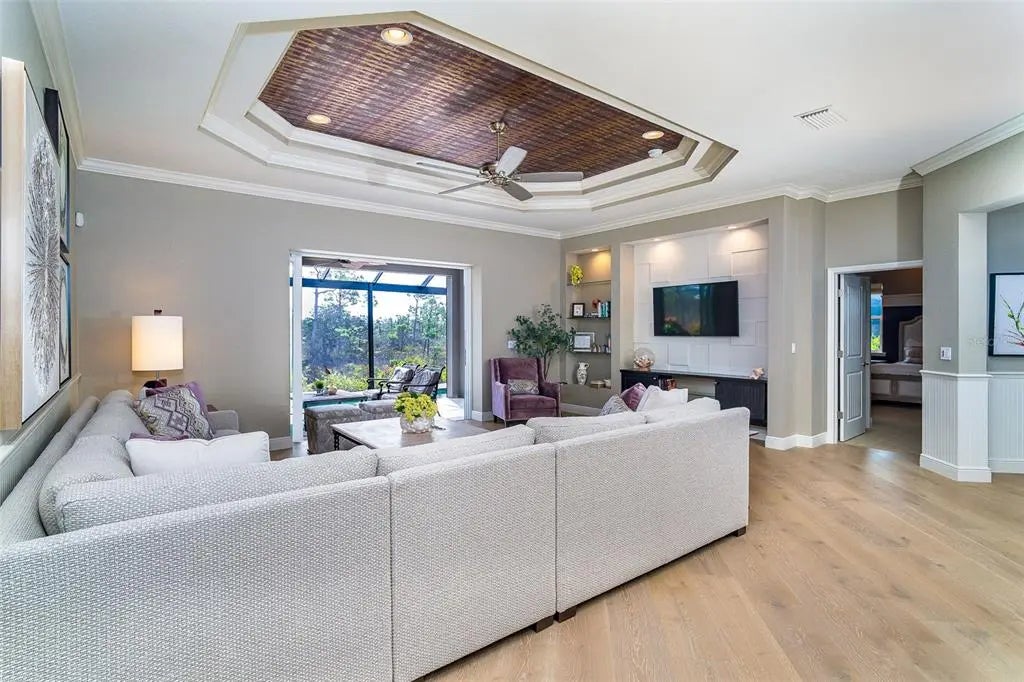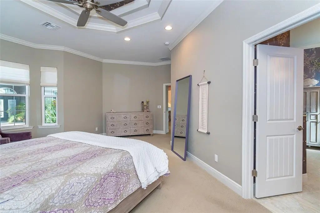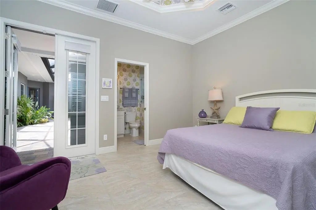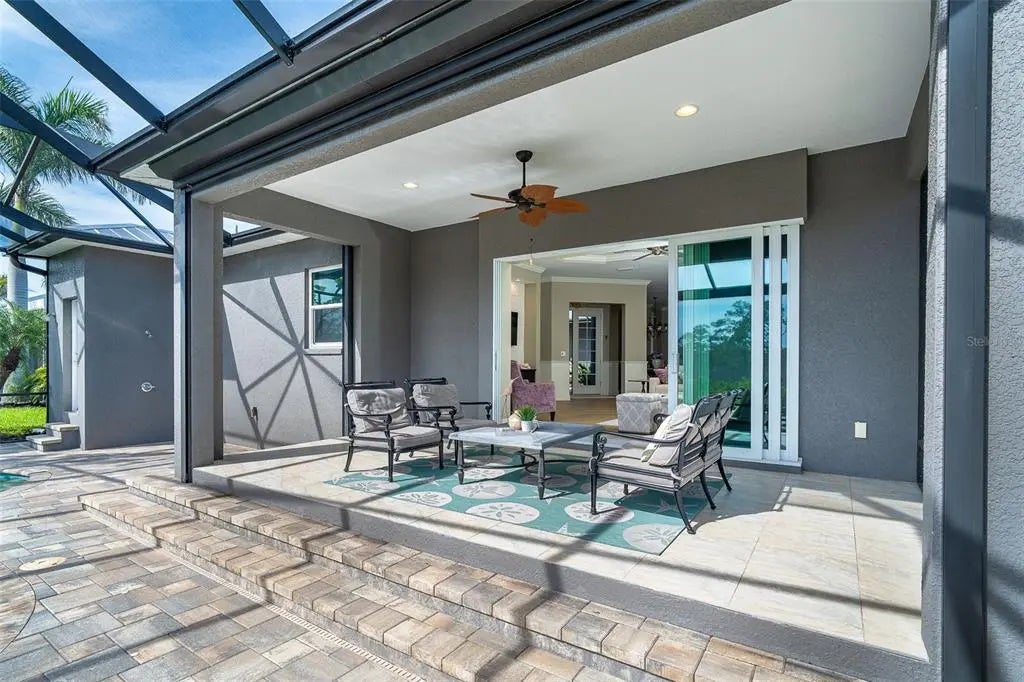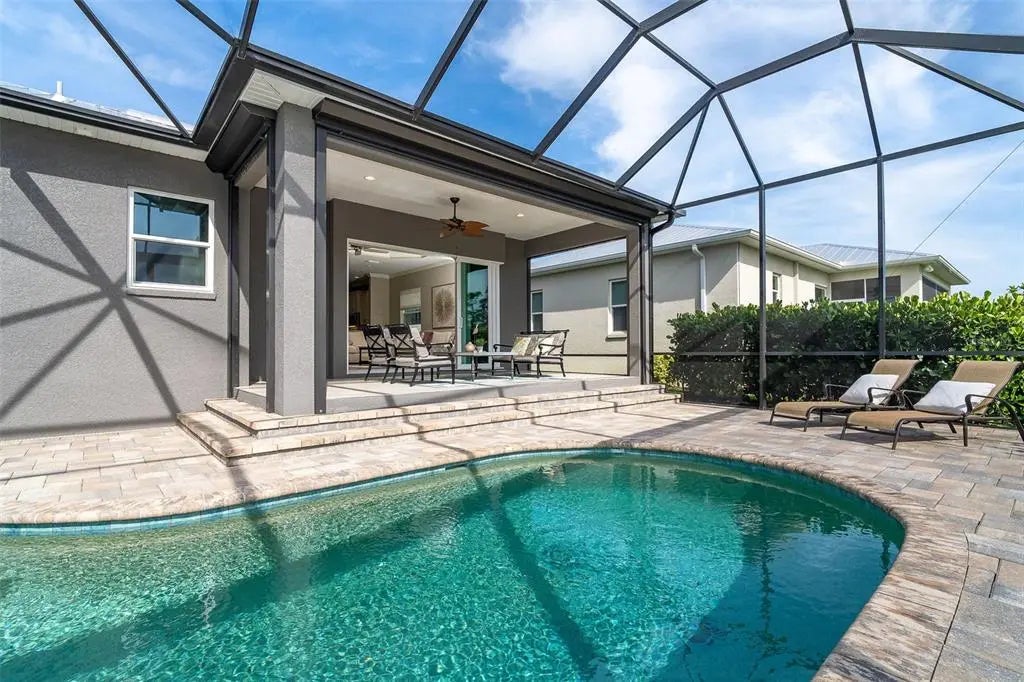 Exquisite Custom Home in Coral Caye — Exceptional Outdoor Living & Refined Design Discover one of the most distinctive and impeccably crafted custom homes in the private, gated community of Coral Caye—just minutes from the pristine beaches of Boca Grande. This 3-bedroom, 3.5-bath residence combines sophisticated architectural design with inspired outdoor living for the ultimate Florida lifestyle. Enter through custom leaded-glass French doors into a peaceful garden courtyard with a bubbling fountain—your own private retreat. A second set of French doors leads into the main living area, where wide-plank French white oak flooring, natural light, and an open layout set the tone for warmth and elegance. The expansive great room serves as the centerpiece of the home, featuring a custom-designed feature wall with built-in cabinetry and shelving. Intricate ceiling details grace the great room, entryway, primary suite, and cabana bedroom, while crown molding and custom beadboard accents enhance the home’s refined coastal style. The gourmet kitchen is a chef’s dream, boasting upgraded cabinetry with 48" uppers, glass-lit display cabinets, pull-outs, and extra drawers for smart storage. Granite countertops and backsplash, premium appliances, and designer lighting create both beauty and function. Adjacent to the kitchen, a custom built-in dining area provides the perfect space for gathering and entertaining. The luxurious primary suite is a serene escape, complete with custom wall treatments, spa-inspired finishes, a private water closet, and a frameless glass shower. Two additional bedrooms—including a private-entry cabana suite—offer comfort and privacy for family and guests. A thoughtfully designed laundry room adds convenience with upper and lower cabinetry, a built-in sink, and ample storage. Step outside to a true outdoor oasis featuring a Pebble Tec heated saltwater pool and spa, all enclosed within a sweeping clear-view lanai overlooking tranquil preserve views. A dedicated pool bath adds ease for entertaining. Additional highlights include a metal roof, impact-rated windows and doors, upgraded landscaping, designer window treatments, and an epoxy-coated garage floor with custom cabinetry and storage. Electric Storm Smart roll-down shutters on the lanai provide both protection and additional storage. Built in 2018 and meticulously maintained, this move-in-ready home epitomizes modern luxury. Coral Caye residents enjoy resort-style amenities including a beautifully appointed clubhouse, heated community pool, pickleball courts, and a fitness center—all maintenance-free and surrounded by natural preserves. Located just minutes from Boca Grande’s beaches, golf courses, dining, shopping, boating, and world-class fishing, this residence offers the very best of Southwest Florida living. Experience the perfect blend of custom design and relaxed sophistication—schedule your private showing today.