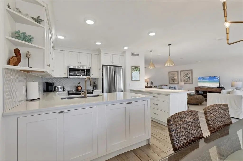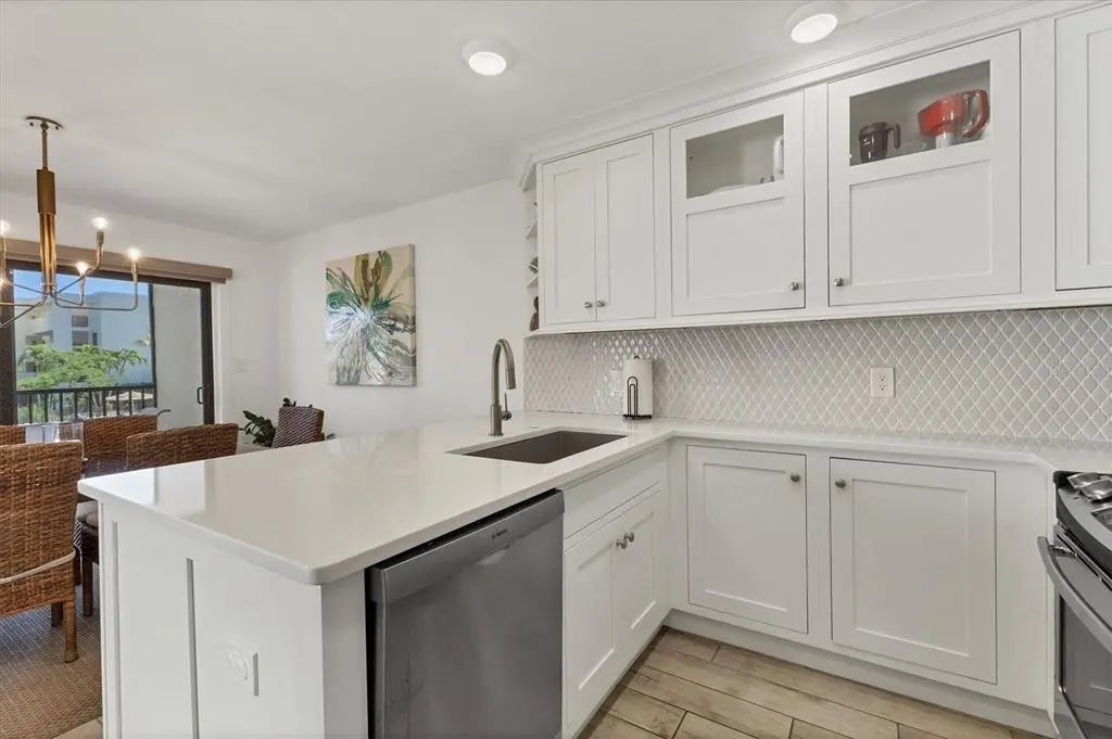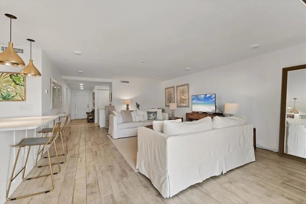 Now's your chance to own a piece of paradise! Breathtaking, pool and GULF views from the extra large enclosed lanai! Renovated down to the studs in 2017 this 2 bed, 2 bath has a completely new layout! Kitchen has new appliances and elegant quartz countertops. Custom Starmark cabinetry with hidden hinges and flush inset doors along with Kohler and Brizo hardware are found both in the kitchen and baths. Primary has large walk-in shower. New light fixtures and recessed ceiling lights. Tile floor throughout looks like wood but durable and easy to clean! Plantation shutters and impact glass on windows and lanai doors. New electric, plumbing and HVAC. Not a detail was missed in this must see condominium! Unit includes a parking space, storage closet and use of golf cart lot. Resort - like amentities include a large heated swimming pool, lighted tennis courts, patios for BBQ's and elevators for easy access. Enjoy walks on Boca Grande's coveted white sandy shoreline, take a golf cart ( included in sale) to the nearby bike path and head downtown to enjoy the many restaurants and shopping or simply relax and watch the sunset from your lanai.