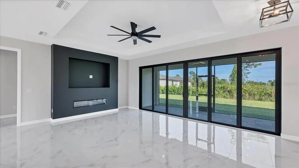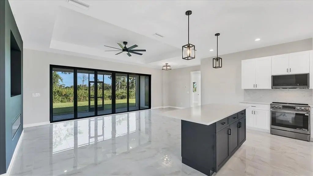 Why wait to build when this stunning, move-in-ready new construction is complete and loaded with upgrades? The Alyssa Model (1668) by Warren Hope Builders showcases exceptional craftsmanship, elegant design, and thoughtful attention to detail throughout. Step through the impressive 8-foot double entry doors into an open-concept living area featuring 6-panel center-lock sliders, a built-in electric fireplace with TV niche, and soaring ceilings that create a bright, airy feel. The chef’s kitchen is a showstopper with quartz countertops, a farmhouse sink, soft-close cabinetry, and a large island offering extra storage, electrical outlets, and seating — all complemented by brand-new LG stainless steel appliances. The owner’s suite provides a private retreat with French doors to the lanai, a walk-in closet plus an additional closet, and a luxurious spa-style bathroom featuring a large walk-in shower with built-in seat, jumbo rain head, ceiling-to-floor tile, and a private water closet. An oversized 23x23 garage adds an extra 100 square feet — perfect for hobbies or storage — and includes a utility sink and 8-foot garage door. The indoor laundry room comes complete with front-loading washer and dryer and a wash tub for added convenience. Enjoy paver lanai areas, lush landscaping, and room for a pool, plus modern energy-saving features such as foam insulation to keep your power bills low and an irrigation system with its own well to maintain a green, healthy lawn. The whole-house gutters and oversized paver driveway provide the finishing touches to this exceptional home. This 3-bedroom, 2-bath residence offers 8-foot interior doors, quality finishes, and a design that blends luxury with everyday comfort. Don’t wait to build — your new Florida dream home is ready for you today!