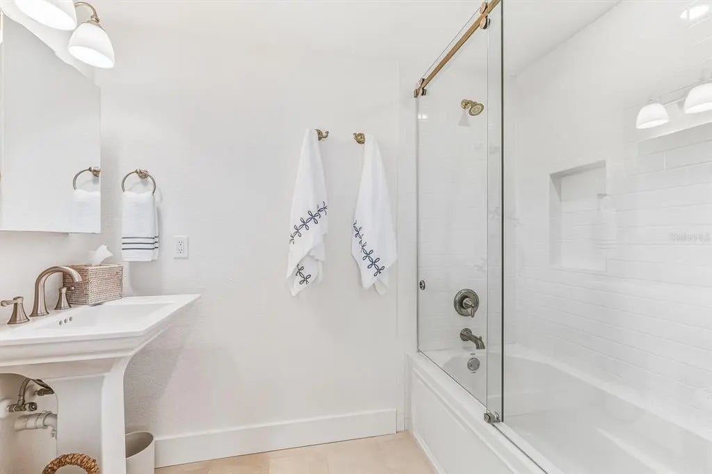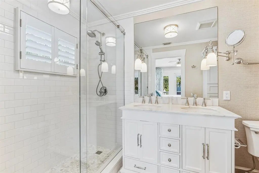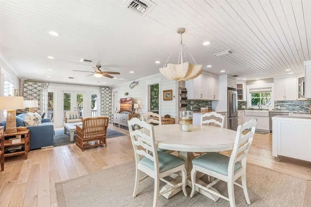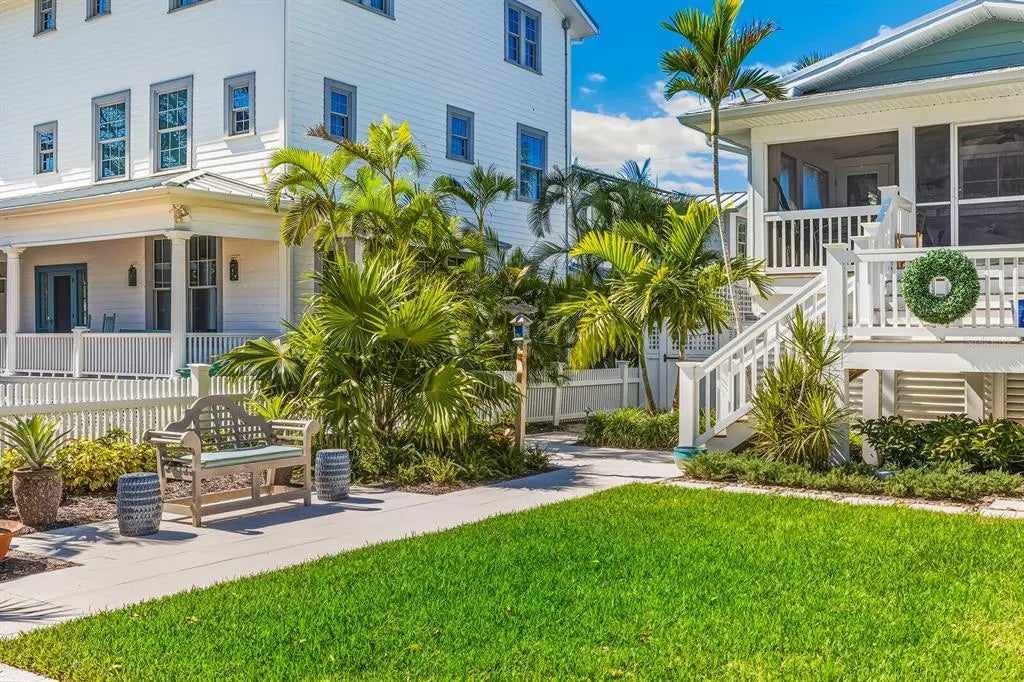 Embrace the laid-back elegance of island life in this beautifully updated 3 bedroom, 2.5 bath cottage, ideally situated just one row from the beach in Boca Grande’s historic village. Sunlight fills the home, highlighting timeless details such as crown molding, plantation shutters, and beautiful hardwood floors that flow through the main living areas. The kitchen is both stylish and functional, featuring KitchenAid appliances, solid wood soft-close cabinetry, quartz countertops, and a farmhouse sink. The primary suite serves as a serene retreat with a full ensuite bath offering dual sinks, granite countertops, custom cabinetry, and a frameless glass shower. Downstairs, new tile flooring enhances the spacious ground level, which includes a secondary living area, two guest bedrooms, and a beautifully finished full bath with a glass-enclosed shower, perfect for hosting family and friends. Step outside to a screened lanai overlooking the heated pool, surrounded by mature landscaping and a fully fenced yard for privacy. Paver pathways lead to a generous golf cart garage, large enough for both parking and storage. There is also a private outdoor shower, perfect after a day at the beach. Recent updates include a new pool pump, pool heater, washer, and dryer. The home also features durable HardiePlank siding, a standing seam metal roof, and low-maintenance Apex decking for added peace of mind and longevity. Located on historic Whiskey Row with convenient off-street parking, this cottage perfectly blends privacy, convenience, and the quintessential Boca Grande lifestyle - timeless, relaxed, and effortlessly refined.