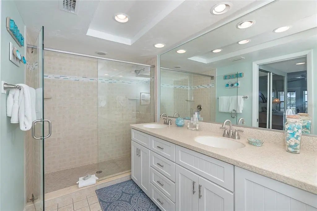 A buyer's dream. Just what you have been waiting for. Look no further for your piece of paradise. No carpeting! Just high-end area rugs and spectacular decorating. This fabulous move in ready first floor 2 bedroom, 2 bath Villa is nestled in Palm Island Village 1 - quietly positioned off the higher traffic pathways with glorious views of the pool and Gulf. This Villa has been recently redecorated with updated baths and kitchen. There is a New air conditioner, hot water heater, roof and stainless-steel appliances. This villa is also one of the most sought after rental properties within Palm lsland Resort and can generate income if so desired. The gorgeous primary bedroom with private en-suite is complete with a large easy access walk-in shower, dual sinks and his and hers closets. A French door leads from this bedroom suite to a patio complete with charming bistro set where you can relax and enjoy your morning or watch the breathtaking sunset. The charming second bedroom includes two twin-sized beds with closet and beachy decor. Two additional closets and a separate laundry room within the villa provide space for pool or beach accessories. The living room and dining room area boasts exquisite furniture, a twin sleeper and French Bistro chairs. This is the perfect spot to gather with friends while enjoying phenomenal views. No detail has been overlooked to provide ultimate enjoyment and entertainment possibilities. You can experience glorious sunsets, walk the pristine beach searching for shark's teeth and shells, and keep busy with your resort and beach living lifestyle. Palm Island Resort amenities are plentiful; exercise facility, boat docks, 24-hour patrol on site, bell personnel, Rum Bay Restaurant, golf cart, bike, kayak and paddleboard rentals, access to a community facility for events and many other amenities to be enjoyed. Don't wait, make it your beach getaway today!