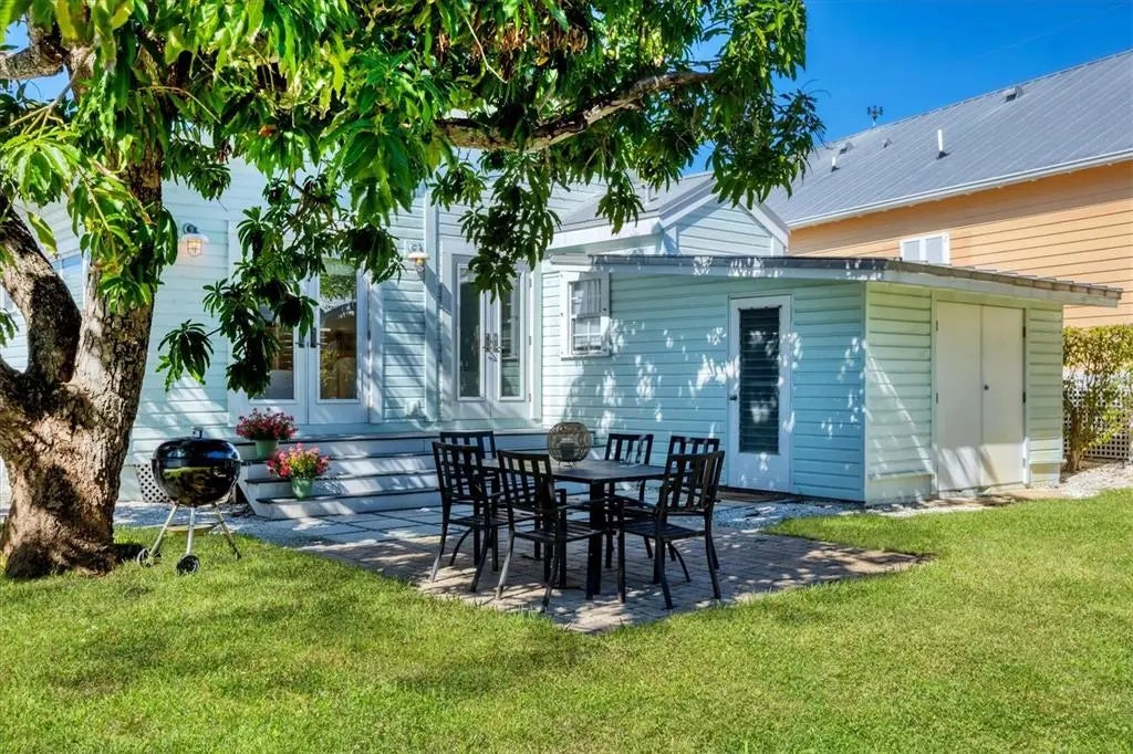 Charming 3BR/2BA Historic Cottage on Tarpon Avenue – Heart of Boca Grande Village. Nestled along idyllic Tarpon Avenue, this historic 1910 home has been thoughtfully reconfigured to maximize its 1,609 sq. ft. of inviting Florida living space within a total footprint of 1,850 sq. ft. Spacious and welcoming, it can comfortably accommodate family and friends and is ideal for generating income with consistent rental demand. An enclosed sunroom with impact windows and western exposure welcomes you inside, where professionally refinished pine floors flow throughout. The remodeled kitchen features white wooden cabinetry, quartz countertops, a subway tile backsplash, and new KitchenAid refrigerator and dishwasher—all opening to an airy, inviting living and dining area that provides an easy, coastal flow. The updated main bathroom features a double vanity with quartz countertops and a tub/shower combination with glass doors, blending modern convenience with classic cottage style. Impact glass French doors from two bedrooms lead out to a spacious backyard shaded by an established mango tree that bears delicious fruit in season. Outdoor living is functional and inviting, featuring a stone-paver patio for entertaining, relaxing, or grilling. The newly fenced backyard has plenty of room for a pool, and the attached shed provides convenient space for beach cruisers, fishing gear, pool accessories, or general storage. Extensive updates ensure peace of mind and modern comfort, including all-new electrical wiring, relocated and upgraded electric panel and meter, new Rheem Professional 50-gallon electric water heater, new wooden interior doors, new ceiling fans with lights and remotes, and a new irrigation system utilizing well water. The laundry room features a new subfloor, ceramic tile, and a new GE washer and dryer. Fresh interior paint, new insulation, new drywall, and 5-inch baseboards complete this thoughtful renovation. Just a short stroll or bike ride from the island’s inviting Gulf beaches, shops, and restaurants, this captivating cottage perfectly blends historic charm with today’s conveniences. The community of Boca Grande is a truly special place—come see why this slice of island living could be your next home. Schedule your private showing today!