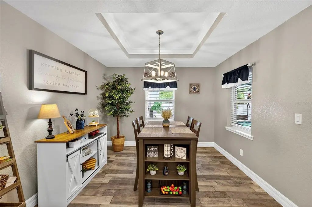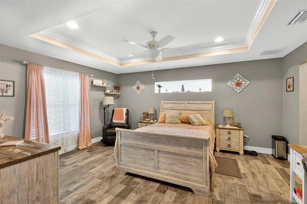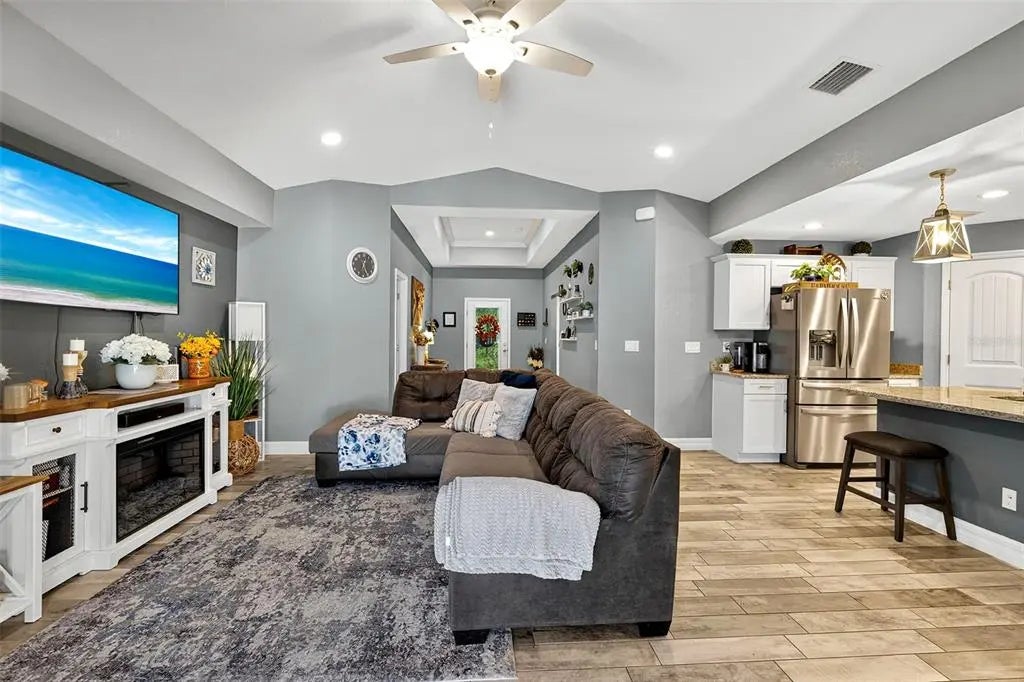 - Interior FeaturesCeiling Fan(s), Eating Space In Kitchen, Kitchen/Family Room Combo, L Dining, Open Floorplan, Primary Bedroom Main Floor, Split Bedroom, Stone Counters, Thermostat, Tray Ceiling(s), Vaulted Ceiling(s), Walk-In Closet(s), Window Treatments