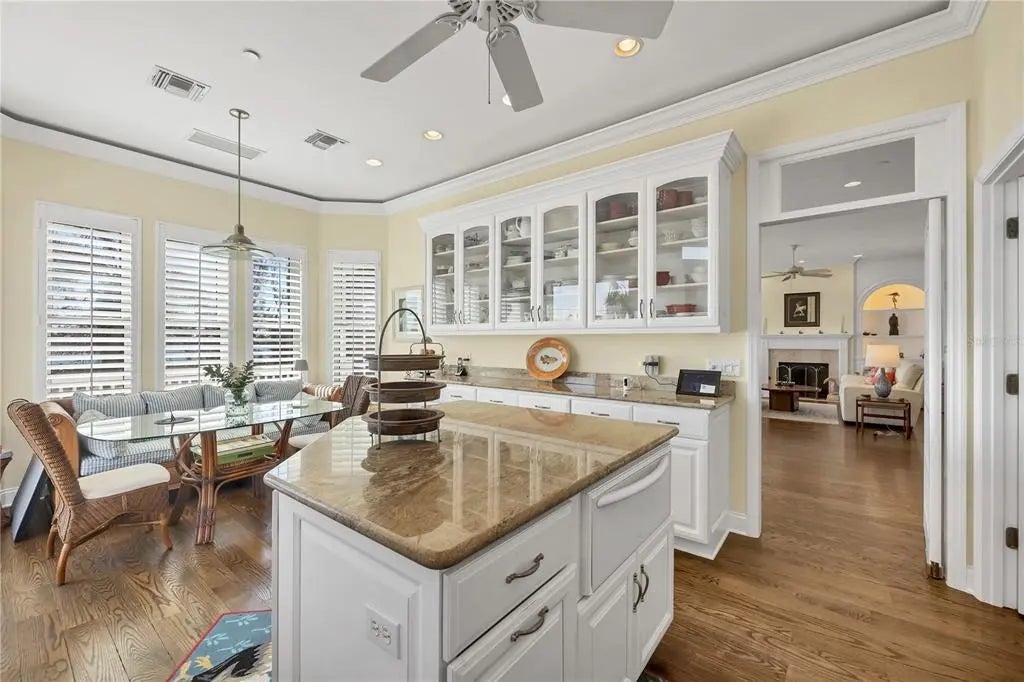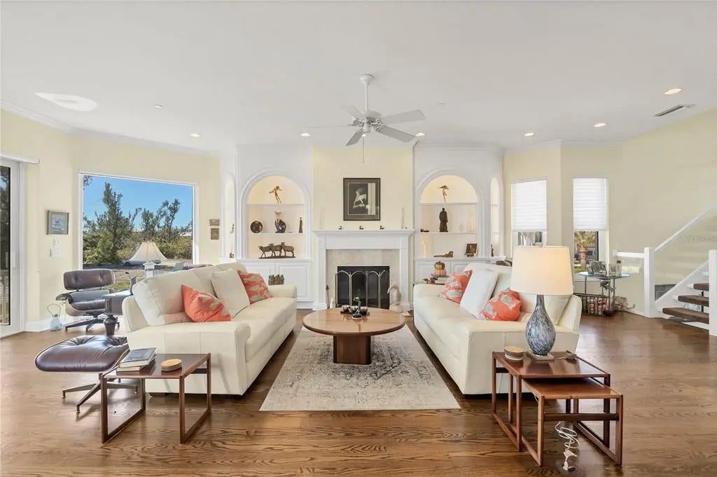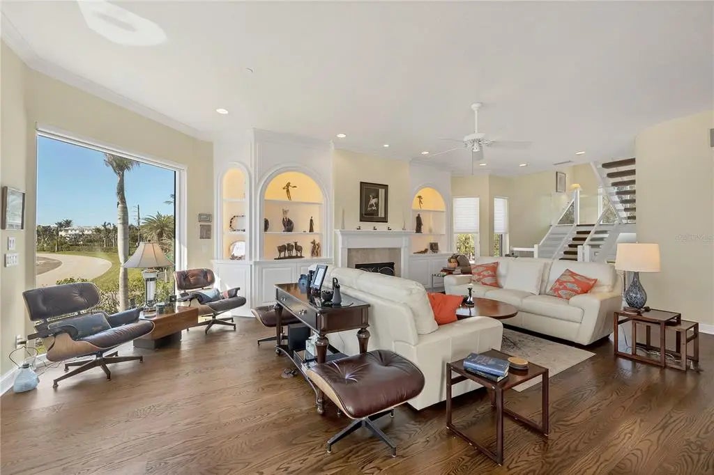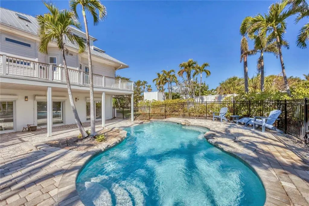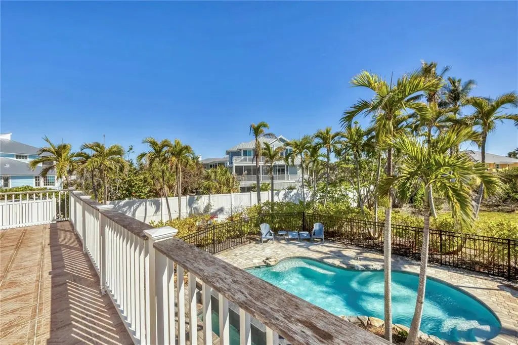 This exceptional custom-built home located on over half an acre offers protected lake views, beach access, and a serene coastal lifestyle in Boca Grande, Florida. Step inside to find 3,387 sq. ft. of thoughtfully designed living space filled with natural light, featuring impact glass sliding glass doors/windows and gorgeous wood floors throughout the main living area. Built by Bowen Construction in 2000, this modified and expanded “Seawatch” design seamlessly blends elegant living with modern comforts. The spacious living and dining area features a gas fireplace, custom built-in shelving, and two sets of sliding glass doors leading to a screened, exterior deck, perfect for enjoying unobstructed, tranquil water views. The Chef’s kitchen boasts a walk-in butler’s pantry with wine refrigerator and the kitchen features a new Sub-Zero refrigerator, double ovens, granite countertops, white cabinetry, and an eat-in dining area overlooking the private swimming pool and lake. This home offers 3 bedrooms and bathrooms, with one bedroom currently used as a den and a whole-home propane powered generator. The entire top floor is dedicated to the primary suite featuring an expanded layout, private deck with modern, clear glass railings providing full lake views. There are two dedicated offices, ideal for those who work remotely. The abundant outdoor space features a custom designed saltwater swimming pool and there’s tremendous parking opportunities for those who like to entertain including a two-car garage, dedicated golf cart garage, and add’l “under trellis” parking outside. This residence is minutes away from the Coral Creek Golf Club and the Boca Grande Club. Gulf Shores North is a quiet residential neighborhood located on the north shore of Boca Grande where beach access is deeded exclusively to homeowners, ensuring a serene and private coastal experience far from the crowds of public beach access points. The reasonable $620/year Homeowner’s Association fee covers the lake maintenance, minimizing carrying costs all while living in an upscale, gorgeous neighborhood with buried utilities. Call us today for your private tour!