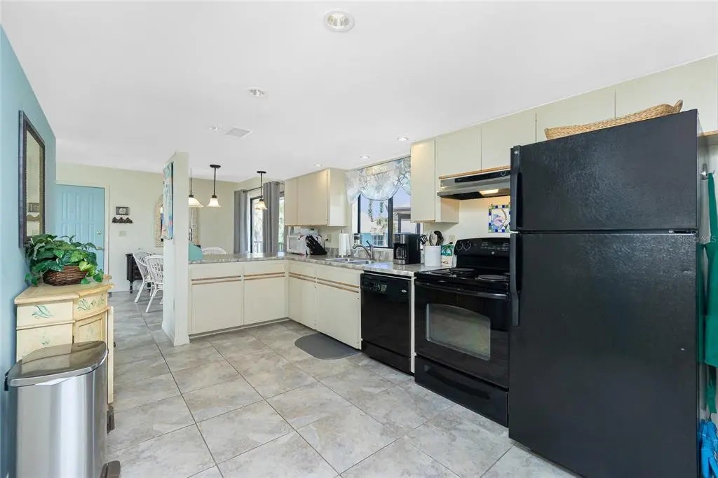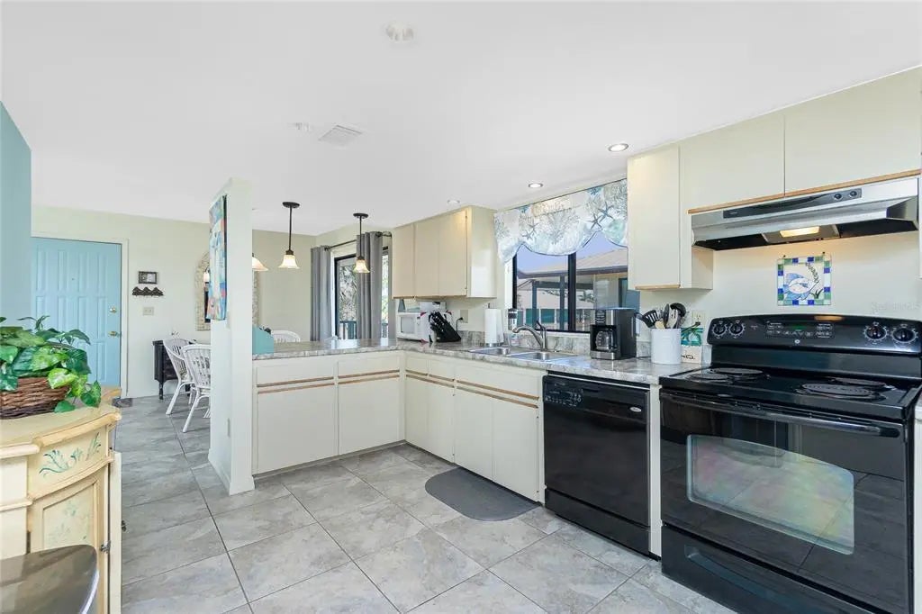 Welcome to Sunburst Condominiums, a lovely 30-unit "Gulf to Bay" community on Manasota Key, in Englewood, Florida. This beautifully furnished, second-floor 2-bedroom, 1.5-bathroom retreat offers stylish, oversized tile flooring throughout and an abundance of natural light streaming-in through multiple sliding glass doors. The primary bedroom includes a walk-in closet and direct access to the Jack-and-Jill bathroom, complete with dual vanity areas and a shared, updated walk-in shower, offering convenience for both bedrooms. Enjoy your morning coffee or evening breezes from the screened, covered balcony just off the kitchen and bedrooms — the perfect spot to relax and unwind. When it’s time to soak up the sun, head downstairs to the heated pool surrounded by an expansive brick paver patio. Just steps away, you’ll find a private dock with boat slips available on a first-come, first-served basis. And for beach lovers, a private stretch of sandy shoreline awaits directly across the street, exclusively for Sunburst residents. Additional perks include assigned parking, and a maintenance fee that covers water/sewer, pest control, exterior insurance, and all common area upkeep — making this a truly hassle-free escape. Sun-filled, and ready for you — your slice of Florida paradise is waiting!