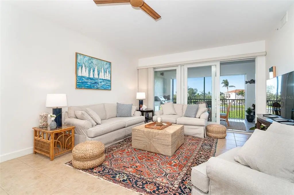 Experience the pinnacle of coastal luxury in this beautifully updated 2-bedroom, 2.5-bath residence in the prestigious Hacienda Del Mar community. Offering 1,682 square feet of heated living space (1,963 total), this elegant condo features a bright, open floor plan with 10-foot ceilings, a spacious great room, generous dining area, large chef’s kitchen, and an inviting primary suite. The expansive screened lanai—complete with a full outdoor kitchen—overlooks the breathtaking Intracoastal Waterway, providing the perfect backdrop for serene water views and refreshing coastal breezes. Built to the highest coastal construction standards, Hacienda Del Mar’s buildings offer exceptional durability and peace of mind. Inside, the home showcases a refined collection of premium finishes, including wood cabinetry, stone countertops, stainless steel appliances, tile flooring, and 8-foot solid-core interior doors. Recent upgrades elevate the home even further: updated lighting throughout, including new can lighting and designer fixtures from Hubbardton Forge and Serena & Lily; new carpet in both bedrooms; four new ceiling fans; all new appliances (2024); a new garbage disposal and Moen kitchen faucet; and a new hot water heater installed in 2025. The entire residence was freshly painted in 2024, with tile and grout professionally cleaned the same year, and the front door fully refurbished for a like-new appearance. The lanai has been enhanced with a new metal structure and high-quality 20/20 screening to help deter bugs—an ideal setting for entertaining, dining, or simply relaxing in your private outdoor oasis. Impact-rated Andersen windows and sliders add energy efficiency, storm protection, and additional peace of mind. This exceptional condo is move-in ready, and furnishings are negotiable. Set across 23 acres of lush tropical landscaping, Hacienda Del Mar offers resort-style living with a remarkable array of amenities. Enjoy two heated pools, a spa, fitness center, tennis and pickleball courts, and a stunning waterfront clubhouse. Additional amenities include a private dog park, fishing piers, fire pits, putting green, kayak and paddleboard storage with launch access, and convenient “day docks” for residents and their guests. Ideally located near marinas, pristine beaches, state parks, boutique shopping, waterfront dining, and historic Boca Grande, the community also provides easy beach access via the adjacent marina and the Palm Island ferry. Whether you're seeking a refined winter retreat or a year-round waterfront haven, this beautifully updated condo offers unparalleled comfort, style, and convenience in one of Southwest Florida’s most desirable coastal communities.