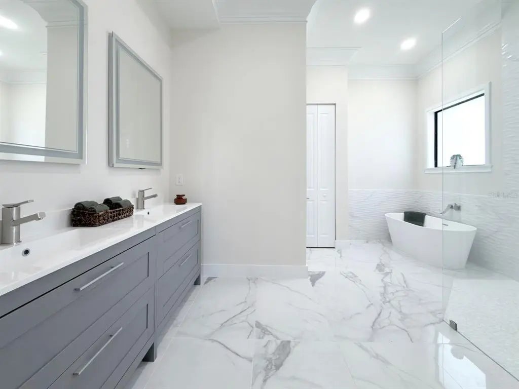 - Interior FeaturesCeiling Fan(s), Crown Molding, Dry Bar, Eating Space In Kitchen, High Ceilings, Primary Bedroom Main Floor, Solid Wood Cabinets, Split Bedroom, Stone Counters, Thermostat, Walk-In Closet(s), Window Treatments