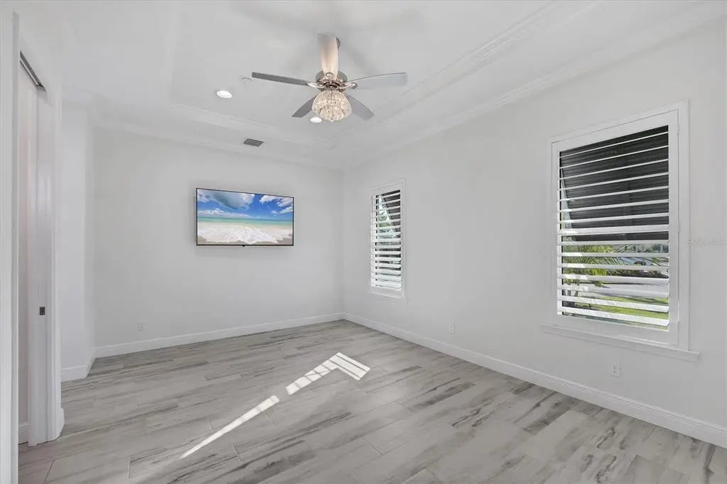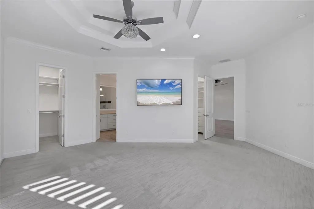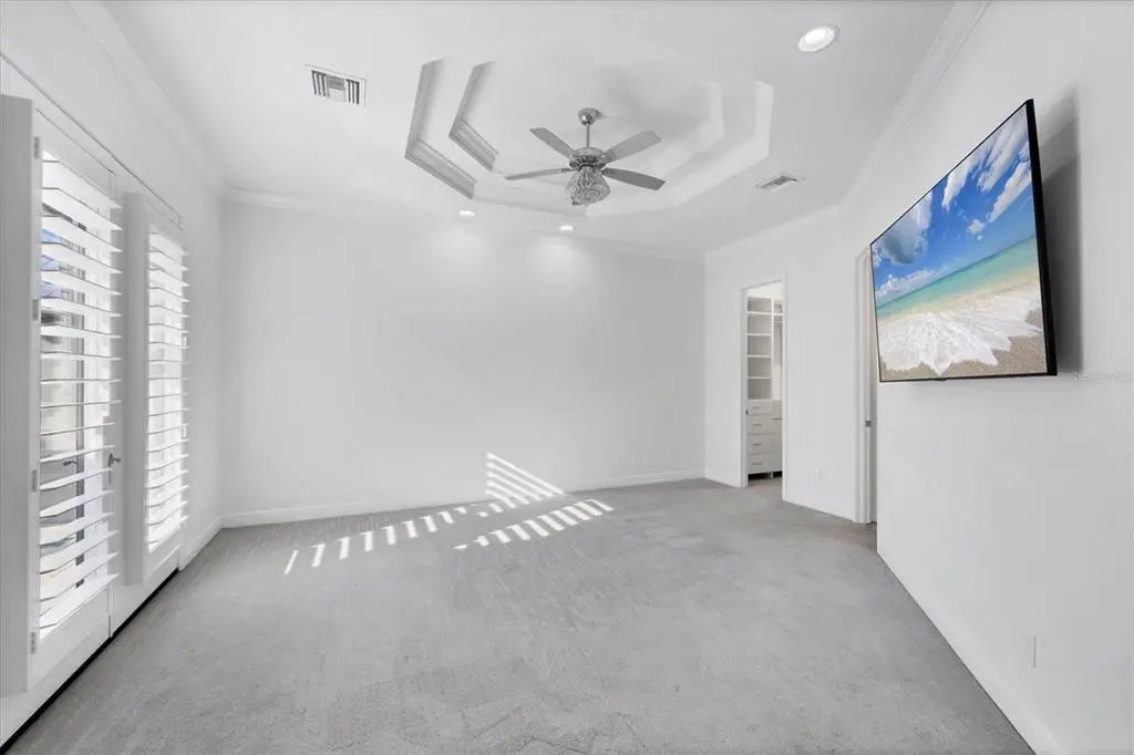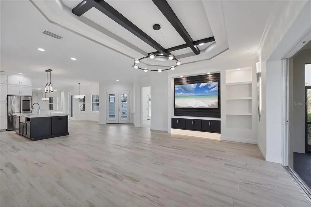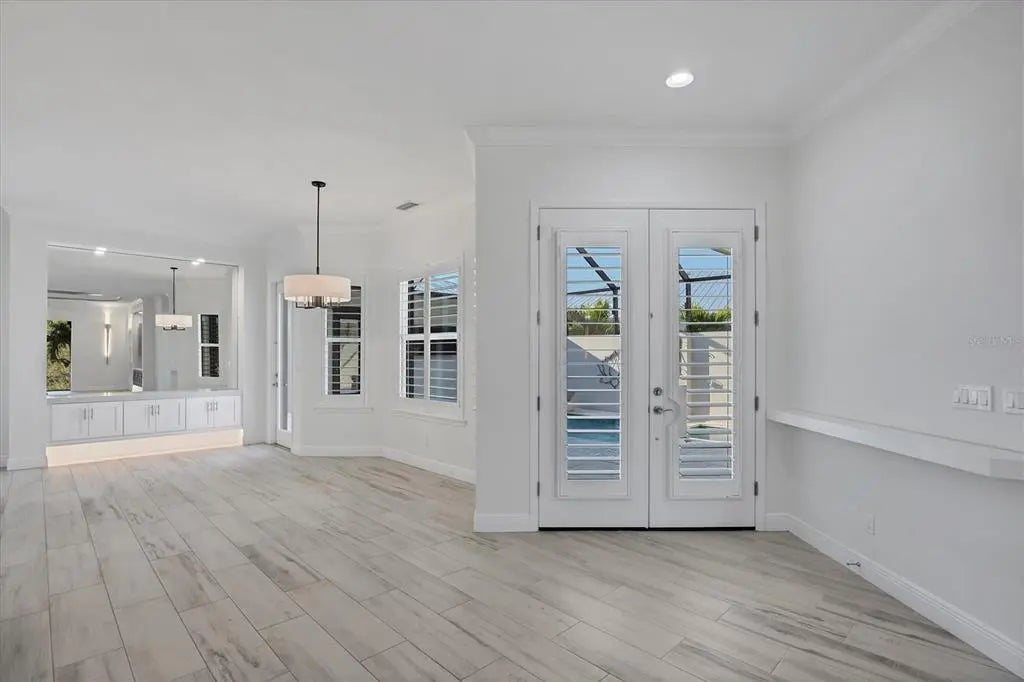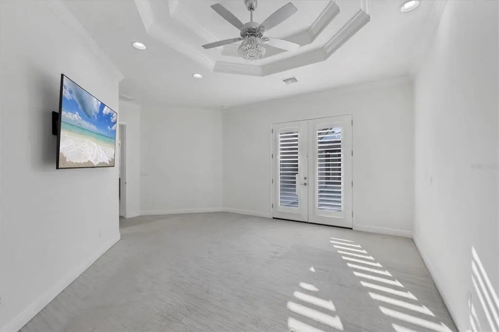 Welcome to the ultimate Florida lifestyle! This stunning COURTYARD STYLE POOL HOME in the exclusive gated community of Coral Caye places you just minutes from the world-famous beaches, crystal-clear waters, and island charm of Boca Grande. Thoughtfully designed and extensively upgraded beyond the builder’s standard Anguilla model, this home blends elegance, privacy, and modern comfort in a setting that truly feels like a private resort. From the moment you enter the courtyard, you are transported into your own sanctuary—a beautifully designed outdoor oasis with a custom pool with expansive sun-shelf, spa, and tranquil water features that is surrounded by an expanded paver deck perfect for lounging, entertaining, or watching the big game with a built-in TV hookup..and yes, the TVS are included! Whether you’re hosting friends after a day at the beach or enjoying a quiet evening under the stars, this space is pure paradise. Inside, a light-filled open floor plan welcomes you with soaring tray ceilings, beams, plantation shutters, crown molding, and rich designer finishes at every turn. The gourmet kitchen is a showstopper, featuring stunning floor-to-ceiling cabinetry, marble countertops, a massive center island, premium lighting, and beautifully crafted built-ins that make this space as functional as it is beautiful. The living room has been expanded an additional four feet, offering a grander gathering space anchored by a custom entertainment wall. Even the pantry has been enlarged and converted into a flexible home office—perfect for working, crafting, or additional storage. The luxurious primary suite opens directly to the courtyard through French doors and includes dual custom walk-in closets with built-ins and an elegantly redesigned bath with dual vanities and walk-in shower. Guests will feel spoiled with the private ENLARGED CABANA SUITE, complete with an updated en suite bath and room for comfortable long-term stays. An additional guest bedroom with custom built-ins provides added space and comfort. Every detail has been considered—from 8-foot doors throughout to expanded cabinetry with under-cabinet lighting, upgraded laundry with sink and marble counters, and a garage extended four feet with epoxy flooring and plumbing for a second washer. Set on a PREMIUM BACK LOT, this home also enjoys a serene views of unobstructed nature views of Amberjack Environmental Park from the back lanai and complete with motorized privacy screens for comfort and shade. Adjacent is the stunning clubhouse and pickleball courts. Coral Caye is an intimate 100-home gated neighborhood offering maintenance-free living and resort-style amenities including a fitness center, community pool, meeting room, and pickleball courts. Every day feels like vacation. If you’ve dreamed of living minutes from stunning beaches, world known fishing, golf, shopping, grocery, great local restaurants and more while also enjoying the privacy, beauty, and elegance of a refined coastal retreat—this home delivers it all! Give us a call to schedule your own private showing, today!
