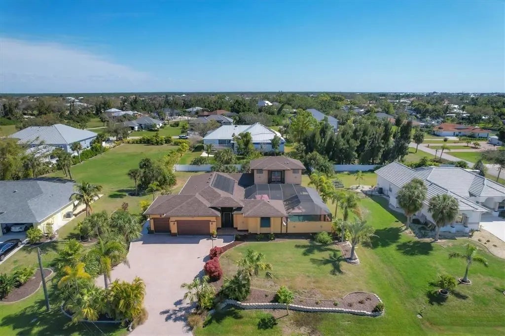This Spanish and Italian inspired grand courtyard villa offers a blend of classic architecture, magnificent indoor and outdoor living space, and modern coastal construction quality. Priced to sell, the property is a tremendous value with 25,000 sq.ft. of land, nearly 2,800 sq.ft. of air conditioned space, nearly 2,000 sq.ft. of pool and lanai area, a 3 car garage, and room for a large outbuilding shed or additional garage. Gorgeous mahogany front doors open into the grand courtyard living area and pool lanai. Entertain, dine, or casually lounge in this stunning space with a large Spanish styled fountain offering serene water trickling sounds. The separate guest cabana suite offers unique privacy and opens directly onto the courtyard, and has its own full bath . The cabana is a favorite for guests and their hosts. The main home has another guest bedroom, den/office two full baths and the master suite upstairs has a charming balcony overlooking the courtyard pool area, and offers tremendous sunset views and partial views of the Intracoastal Waterway. The open layout combines the spacious kitchen, large great room and dining room creates into one sensational space with tall vaulted ceilings. The over half acre of land is beautifully landscaped with large mature tropical foliage, towering palm trees, and an enormous paver driveway that accommodates parking for multiple large vehicles. Engineered plans for a 22x24 outbuilding garage and much of the concrete block necessary to construct the garage are included in the purchase. The Association allows fencing, outbuildings, and room for vehicles. The Association has a private beach on Don Pedro Island, kayak launch and clubhouse. The picturesque Vanderbilt developed waterfront neighborhood brilliantly designed with over half acre lots winding around canals and the Intracoastal Waterway, and has grand banyan tree lined streets. The home is walking or golf cart distance to essential shopping, restaurants, and is close to historic Boca Grande, miles of tranquil beaches, three full service marinas, numerous golf courses, and world-class backwater and tarpon fishing.
