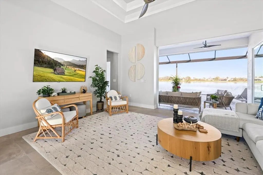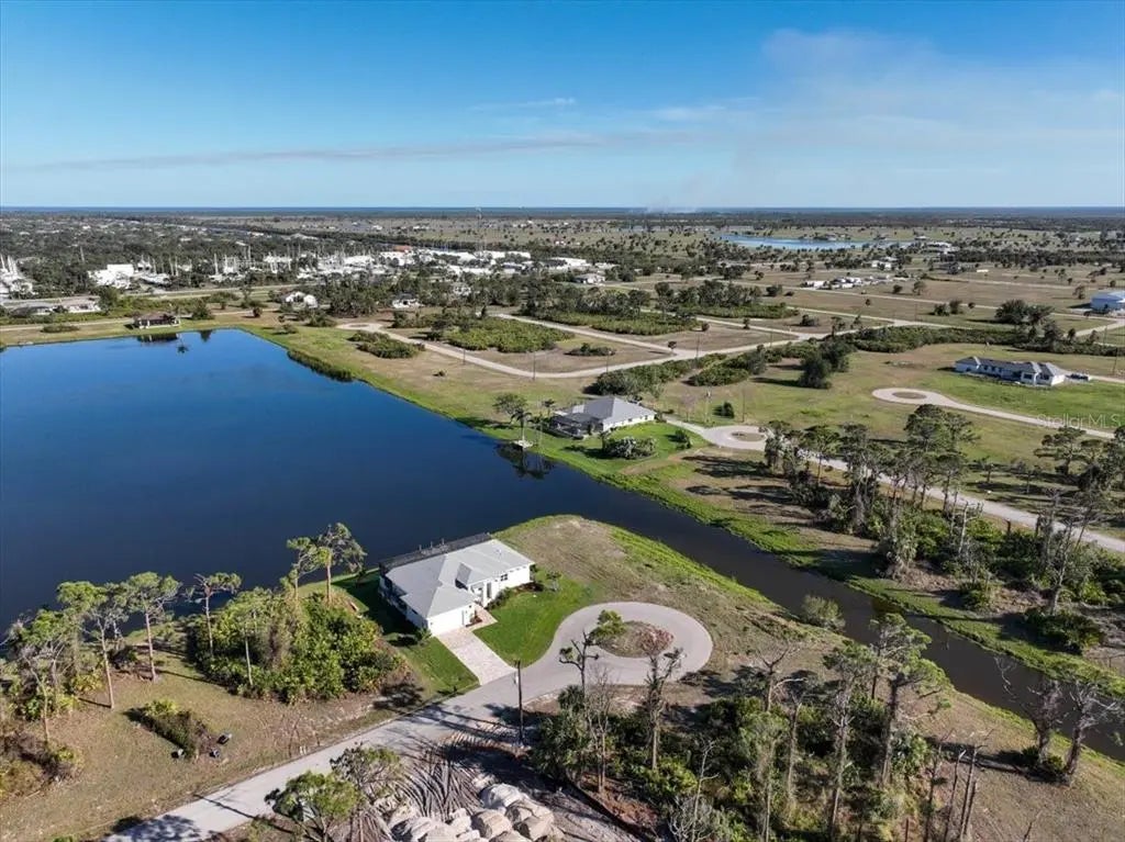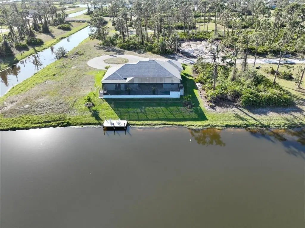 Better than new construction! This exceptional custom lakefront home is perfectly situated at the end of a cul-de-sac in Placida Sands, offering stunning panoramic water views and unparalleled craftsmanship. The community features a series of brackish lakes connected to the salt waters of Coral Creek, attracting abundant wildlife including snook, tarpon, and a variety of bird species. Several adjacent lots are non-buildable and owned by the HOA, ensuring lasting privacy and uninterrupted views. Inside, the home feels like a designer showcase, professionally decorated and finished with premium upgrades. Hurricane-impact 9ft pocket sliders and oversized windows frame beautiful lake views from nearly every room. The gourmet kitchen features stainless steel appliances, quartz countertops, two-tone custom cabinetry, pot filler, range hood, pull-out microwave, and a generous walk-in pantry with wood shelving. Thoughtful construction and high-quality materials set this home apart, including spray foam insulation under the entire roof (lanai and garage included), keeping electric bills remarkably low. Interior upgrades include 11'–13' stepped ceilings with crown molding, premium Sherwin-Williams paint, custom window treatments, and upgraded tile floors throughout. The smart floor plan even offers direct access from the master closet to the laundry room for added convenience. The outdoor living space is equally impressive, featuring an 85ft lakefront lot, brand new composite dock, fresh St. Augustine lawn irrigated from the lake, and a massive 70ft screened lanai extending the full width of the home. Enjoy the heated pool with unobstructed views and a custom handmade waterfall for a peaceful and luxurious atmosphere. A rare opportunity to own a truly remarkable home in Placida Sands—luxury, privacy, wildlife, and breathtaking views all in one. Schedule your showing today!