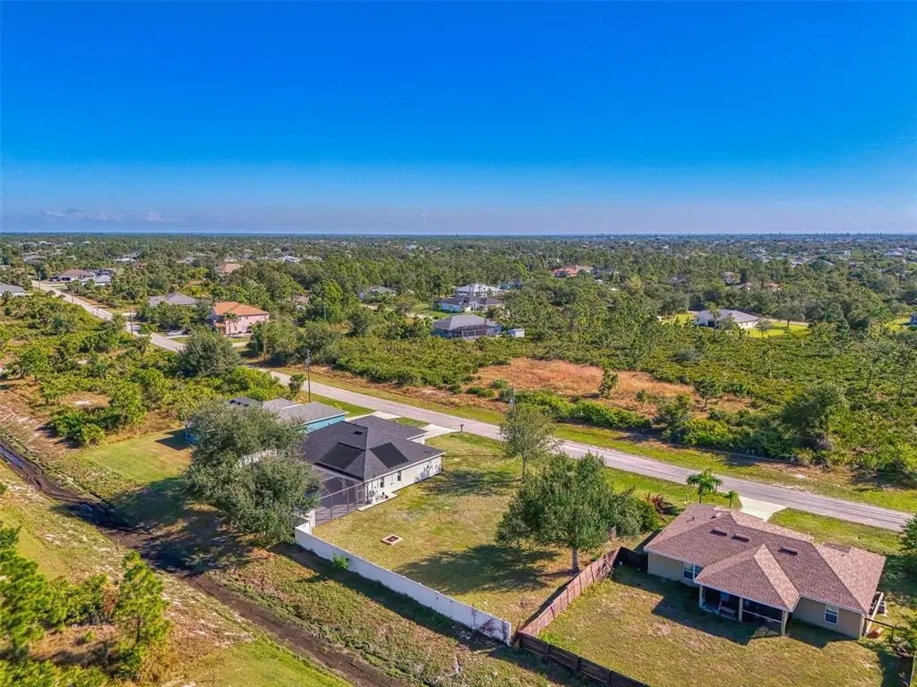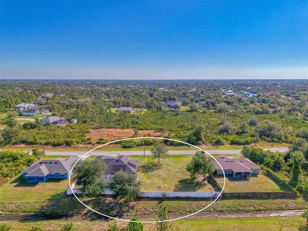 Welcome to exceptional Florida living at its finest! This STUNNING, CUSTOM-BUILT, MOVE-IN READY, 3-BEDROOM, 2.5-BATH POOL HOME—with a private office/den—sits on an expansive half-acre lot in the highly sought-after and vibrant South Gulf Cove community. FRESHLY PAINTED INSIDE AND OUT, the home features new STORM-RATED FRONT DOORS and PORCELAIN TILE FLOORING throughout. Inside, this meticulously maintained home impresses with HIGH TRAY CEILINGS, a desirable split floor plan, and bright, inviting living spaces. The large octagonal eat-in kitchen overlooks the pool and features TALL WOOD CABINETRY, QUARTZ COUNTERTOPS, and BREAKFAST BAR. The LIVING ROOM features HIGH 12-FT CEILINGS WITH RECESSED LIGHTING and sliders opening to the pool deck creating an airy, bright living space. The primary suite offers a spa-like retreat with DUAL SINKS and an EXPANSIVE WALK-IN CLOSET with tiled shower suite and tall glass-paneled open walls. The split floor plan provides privacy, with two additional bedrooms and a full bath with shower/tub combo on the opposite side of the home. Outdoor living shines with a SIZEABLE LANAI with a FRESHLY PAINTED DECK, OUTDOOR SHOWER, POOL BATH, SPARKLING HEATED, SALTWATER POOL and a NEWLY PAVED BACKYARD AREA—perfect for entertaining. Plenty of exterior mood lighting enhances the ambiance Located in an X500-FLOOD ZONE with PUBLIC WATER AND SEWER. A NEW ROOF (2023) adds even more value. The ADJACENT ¼-ACRE CLEARED LOT provides incredible flexibility—ideal for storing an RV, boat or building a workshop or additional garage. Located just a short drive to Englewood Beach, Boca Grande, and the new SunSeeker Resort, this home is perfectly positioned between Port Charlotte, North Port, and Englewood. Enjoy quick access to shopping, waterfront dining, and both the Atlanta Braves and Tampa Bay Rays spring training facilities. YOUR FLORIDA HOME AWAITS YOU—WELCOME HOME!