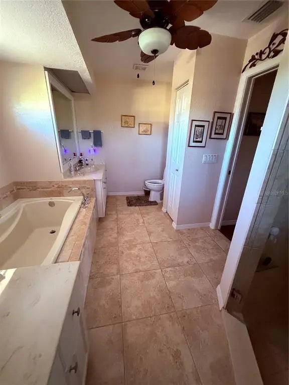- Interior FeaturesCeiling Fan(s), High Ceilings, Open Floorplan, Primary Bedroom Main Floor, Solid Surface Counters, Split Bedroom, Walk-In Closet(s), Window Treatments