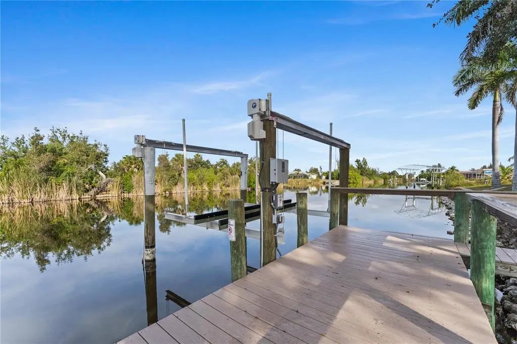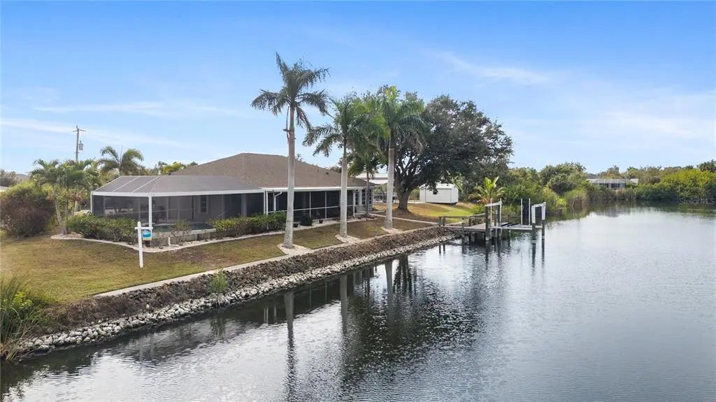 ENJOY PEACEFUL WATERFRONT LIVING In This Lovingly Maintained 3 Bedroom/2 Bath/2+Car Garage Home on Double Canal-Front Lot with Water Views From Nearly Every Room, Lanai & Caged Heated Pool with Spa. Take Leisure (About 20 Minute) Boat Ride to Myakka River From Private Dock, Then On To Charlotte Harbor & Beyond!! Too Many Extras To List ... Shaded Dock with 10,000 Lb Boat Lift, Double Carport for RV or Boats and 10X16 Shed for Extra Storage on Extra Lot, Accordion Hurricane Shutters For Hurricane Protection, 18KW Generac Generator & So Much More!!! This Home Has Never Been Rented & Has Been Occupied By Adults Only.