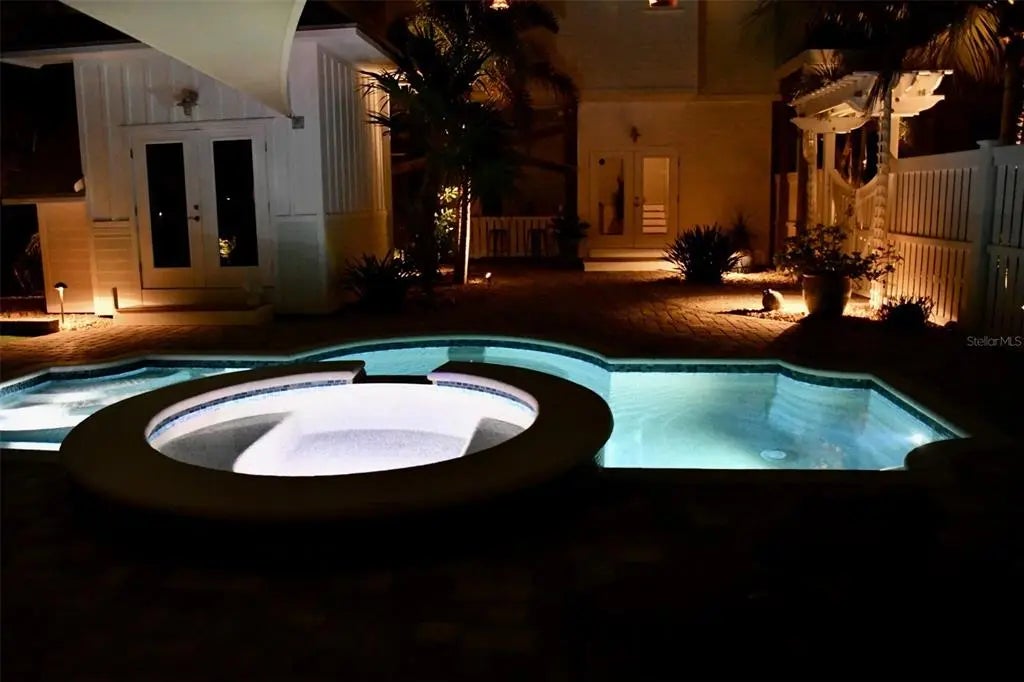 Welcome to Palm/Don Pedro Island. If you've been looking for a resort style living with privacy, you've just found it on this double lot (1/2 acre) with 160' of water frontage located on Bocilla Lagoon. This beautiful 2008 constructed home offers 3 bedrooms, an office/den, 3 full and one ½ baths, with an elevator to all 3 floors. Top floor consists of a kitchen, dining room, living room, office and a 1/2 bath. This level has all travertine floors, volume ceilings and gas fireplace with easy access to top floor open balcony, which offers full lagoon views and partial Gulf views for those beautiful Florida sunsets. Half of the second floor facing the water is a huge primary on suite and a primary bathroom which was updated in 2024, with two custom walk-in closets and access to a screened lanai. The other half consists of two bedrooms, one being waterside, with access to a screened lanai and share a Jack and Jill bath. This floor also offers a wet bar. The home is equipped with PGT Impact Windows, Concrete Siding and Soffits plus a 22 kw Generac Whole House Generator with 500-gallon underground tank (new in 2020), Kinetico Reverse Osmosis Water Filtration & Water Softener Systems, plus many other features and highlights. There is an attached 24’x14’ garage with A/C under the home along with a separate 34’x22’ garage/shop designed for more than just parking your car. Not only would this be great for car enthusiasts, it would make an excellent art studio or even enough space for a golf simulator. Enjoy your private courtyard pool and lanai area with full lagoon views. As an added bonus, there is pool side office/spare bedroom and a outdoor shower/bathroom. All outside decks, dock and fishing pier are constructed of composite decking. The dock offers 2 - 10,000# boat lifts and the fishing pier has kayak storage. Come live the island lifestyle.