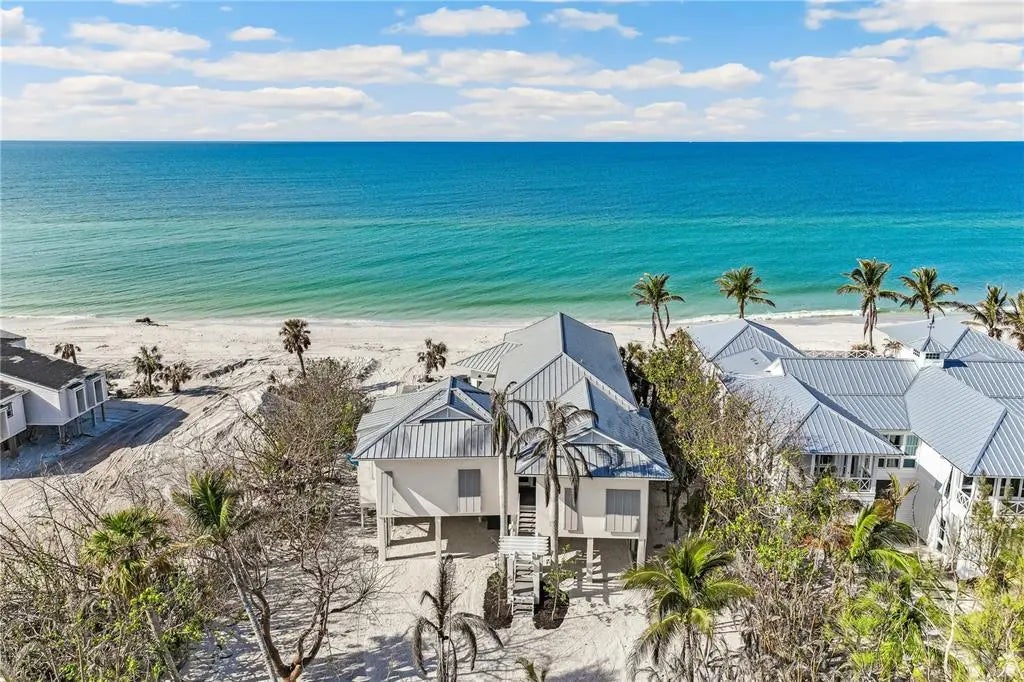 This elevated beachfront residence offers 105 feet of unobstructed Gulf frontage on a private lane with quick access to Boca Grande’s charming village. Expansive impact glass sliding doors open to the water views and illuminate the open living area, while the galley kitchen overlooks the pool and outdoor spaces. The primary suite features floor-to-ceiling doors, a small private office, and an ensuite bath. The two guest rooms feature large closets and full baths. Outside, the private pool and sun deck create a sunny retreat. Just a short golf cart ride away, enjoy Boca Grande’s boutiques, dining, and the historic Gasparilla Inn. Sold furnished, this beachfront property delivers the beachfront, island lifestyle.