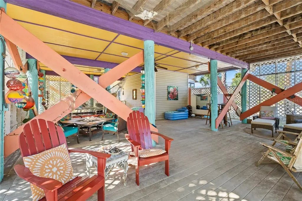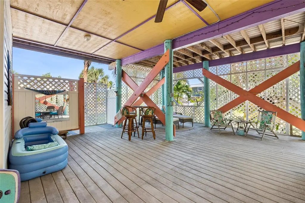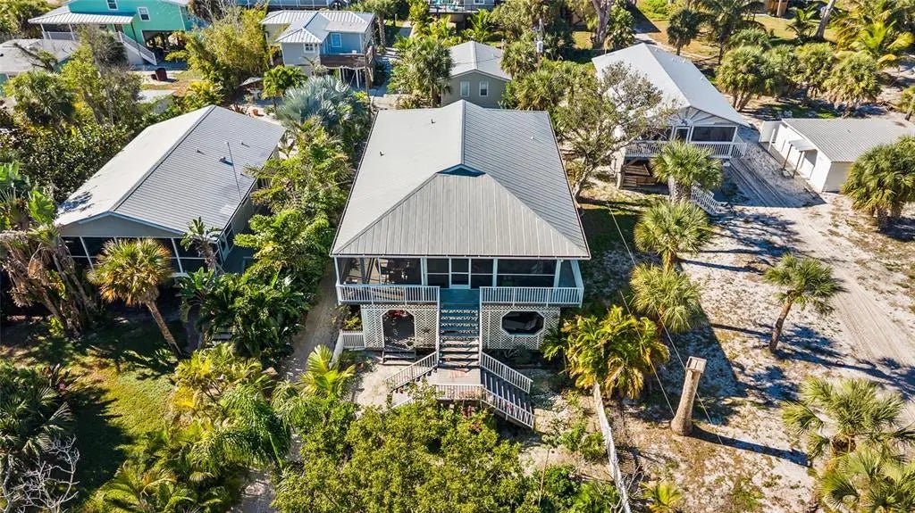 This stylish two-bedroom, two-bath home is nestled among mature tropical foliage on Little Gasparilla Island, a unique bridgeless barrier island located off the Cape Haze peninsula. The island is accessible exclusively by boat or water taxi, offering a peaceful getaway surrounded by natural beauty. Little Gasparilla Island (LGI) is renowned for its peaceful and friendly atmosphere, with no shops, restaurants, or car traffic. Designed with low maintenance in mind, the home features vinyl siding, composite decking and stair treads, as well as powder-coated aluminum railings that wrap around the exterior. These features ensure durability and minimize upkeep for homeowners. Positioned just one lot back from the bay, the home offers water views and is only a short walk from both the beach and the dock. The yearly dock association fee is $250. Inside, the home is equipped with blown-in insulation, double-insulated impact glass doors and windows, solid surface counters, upgraded designer cabinets, decorator fans, upgraded faucets and finishes, a wet-bar, stainless steel appliances, Levlour window blinds, and a stack washer and dryer. The flooring features 18” tile throughout. Key mechanical updates include a new air conditioning unit installed in 2022 and a new water heater in 2024. The property has an aerobic (ATU) septic system, which successfully passed its yearly inspection and received a new aerator in 2024. The current floor plan allows for the potential addition of a third bedroom. A three-bedroom floor plan is available upon request. The home is offered fully turn-key furnished for immediate enjoyment. Downstairs, you can enjoy an outdoor shower, perfect after a day at the beach or out on the boat. The lounge area beneath the home is Key West inspired, featuring bright colors and décor, comfortable seating areas for relaxing. Privacy is enhanced by surrounding lattice and landscaping. There is a large storage area for all your beach toys, yard tools, and fishing gear. The front yard is fully fenced and designed as a garden oasis, with gumbo limbo, avocado, and fig trees, as well as plumeria, hibiscus, and bougainvillea plants. The surrounding waters offer ample fishing opportunities for redfish, snapper, trout, snook, and more. Little Gasparilla Island features 3½ miles of uncrowded, beautiful beach for exploration and relaxation. Residents and visitors can enjoy watching shore birds at the water’s edge, spotting dolphins, and searching for seashells and shark’s teeth. To experience island living firsthand, call to make an appointment to view this home and discover what “living on island time” really means. .