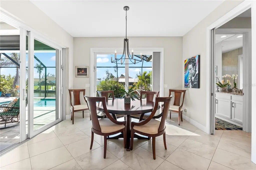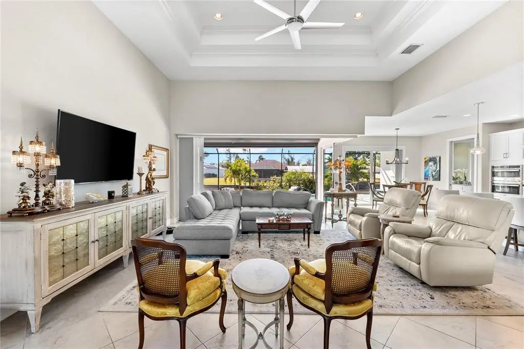 Live the Florida Dream! This stunning custom-built waterfront home offers 80 feet of SAILBOAT-access water with a concrete seawall, composite dock, and 10,000 lb boat lift with canopy, providing direct access to open water and breathtaking sunsets. Inside, enjoy a bright open split floor plan with a chef’s kitchen featuring a large center island, soft-close cabinetry, under-cabinet lighting, and designer finishes. Zero-degree corner pocket sliders create seamless indoor-outdoor living. The screened lanai features a heated saltwater pool and electric roll-down hurricane shutters. The primary suite offers peaceful water views, a walk-through shower, dual vanities, and walk-in closets, with guest bedrooms privately located on the opposite side. Additional premium features include impact windows and doors, spray foam insulation, (owned) solar panels powering the home for very low electric bills, and an oversized 3-car garage. The fully fenced, tropical landscaped yard includes a full irrigation system. Just minutes to beaches, golf, shopping, and dining—this is Florida waterfront luxury at its finest.
