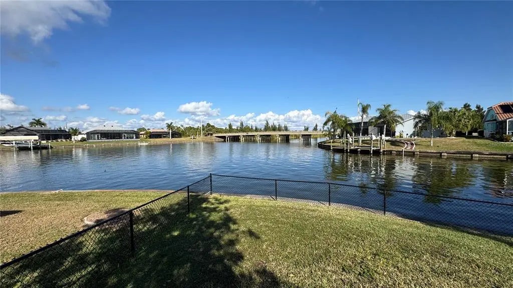 Under contract-accepting backup offers. Welcome to your South Gulf Cove retreat! This well-maintained single-family residence offers an exceptional blend of waterfront living and Florida lifestyle comfort in the desirable community of Port Charlotte. Nestled on a partial tip lot with approximately 154' of seawall and direct canal access, this home provides unparalleled opportunities for boating, fishing, and sunset views just minutes from open water. Step inside to a light-filled open layout featuring vaulted ceilings and an updated eat-in kitchen—perfect for both everyday living and entertaining. The spacious living area flows seamlessly to the screened patio and outdoor entertaining spaces, where you can enjoy tranquil water views and Florida breezes. A bonus room adds versatility for an office, media room, or hobby space. The attached garage offers ample parking and storage, while a 32' private dock makes waterfront living easy and enjoyable. Relax in your solar-heated in ground pool and spa (spool), fully screened for comfort and privacy—ideal for cooling off or year-round entertaining. Enjoy Florida living at its best with boating and outdoor recreation right from your backyard.
