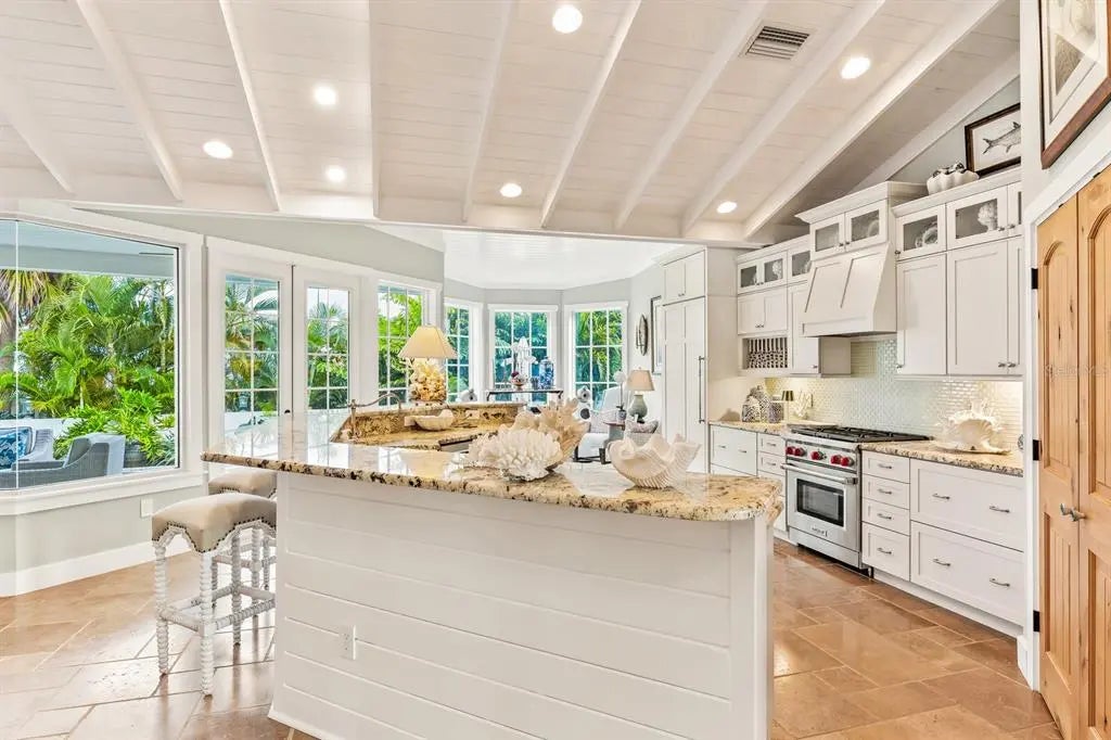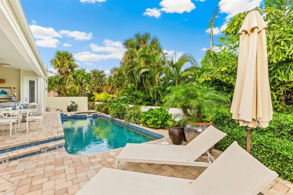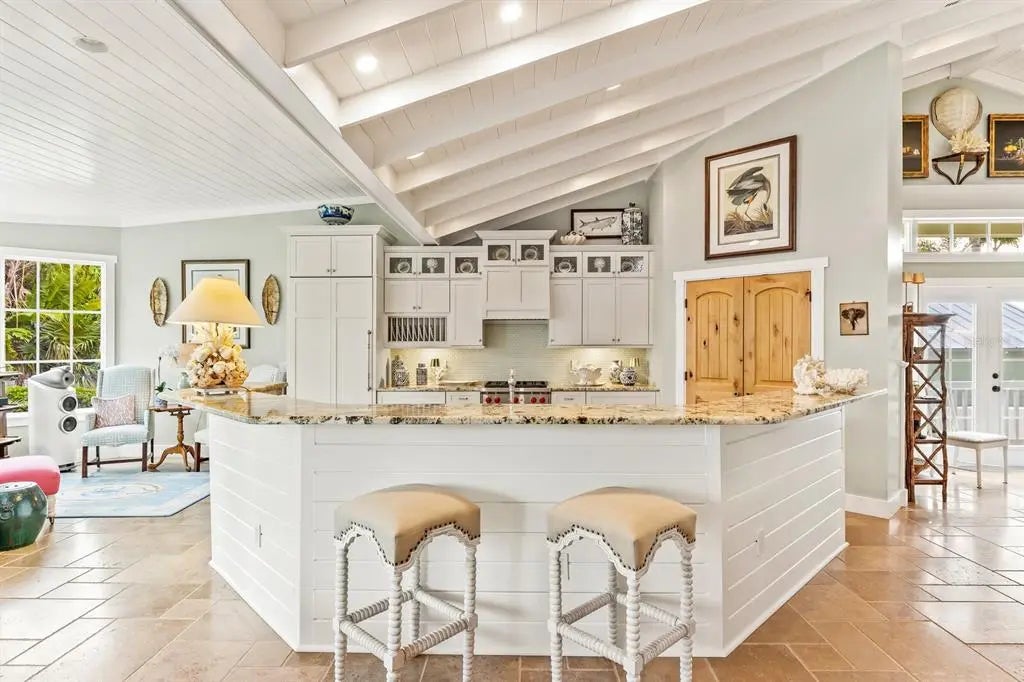 Nestled in the heart of Boca Grande's charming historic district, just steps from downtown amenities, this impeccable custom-built home offers the epitome of luxury island living. Constructed in 2012, architecture by T.A. Krebs with unparalleled craftsmanship and attention to detail, this move-in-ready home exudes timeless elegance and modern sophistication. Upon entering, you are immediately captivated by the soaring 24-foot cupola and exquisite 6-inch tongue-and-groove board ceilings, setting a grand tone for the open and inviting interior. The home features three spacious bedrooms and four and a half well-appointed bathrooms, providing ample space for family and guests. Cozy up by one of two stunning brick fireplaces—one gracing the living room and the other in the serene primary bedroom. Throughout, luxurious travertine and wood flooring flows seamlessly, complemented by granite countertops in the gourmet kitchen. Equipped with top-of-the-line Wolf and sub-zero appliances, a convenient garden sink, gas stove, gas oven, and generous pantry, this kitchen is a chef's dream. French doors seamlessly connect the interior to the outdoor oasis: a brick-paved patio overlooking a heated pool and spa and a dedicated pool bathroom for ultimate convenience. Additional highlights include a large upper-level bonus room ideal for extra sleeping or living area or relaxation, durable Hardy board siding, all impact-resistant glass windows and doors for peace of mind, a 2+ car garage, and lush, mature landscaping that envelops the property in privacy and natural beauty. Truly a rare gem in the heart of Boca Grande, this exceptional home blends historic charm with contemporary luxury—ready for you to call it your own.