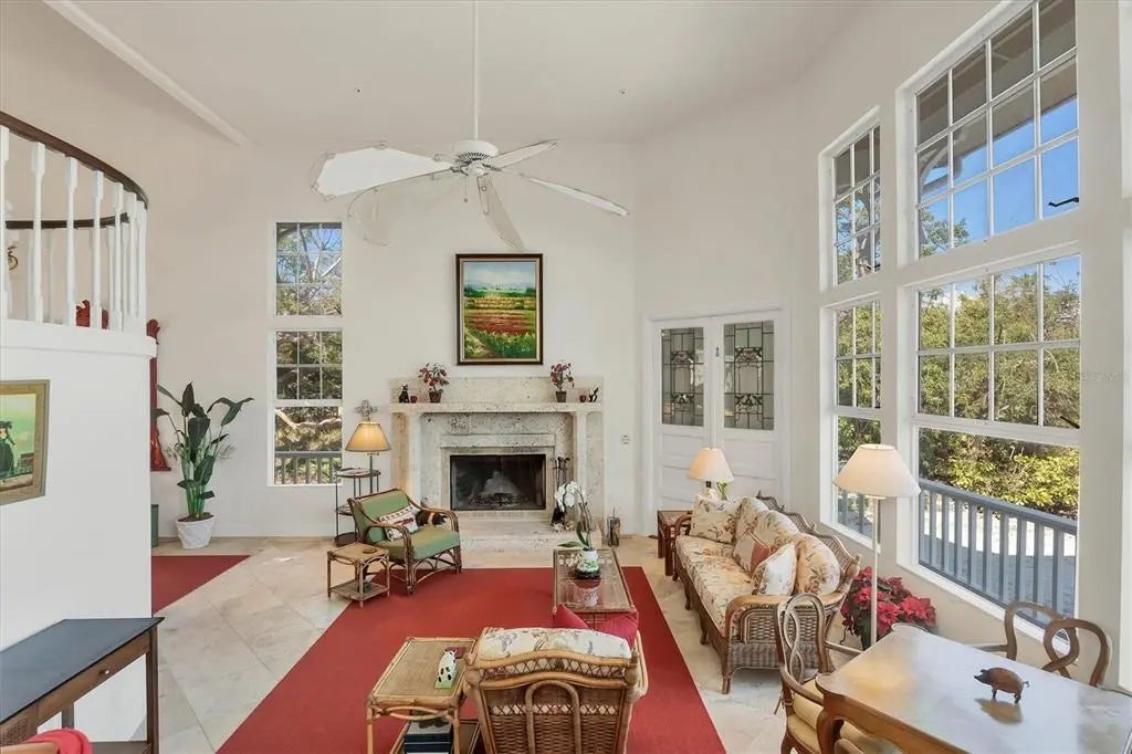 Positioned in a secluded and private corner of Boca Grande, this exceptional estate boasts prime deep-water dockage, with direct access to Charlotte Harbor and no bridges to the Gulf of Mexico. Expansive canal frontage and outstanding boat dockage with an 8,000 lb boat lift provides ample space for a large yacht and multiple smaller vessels. Immerse yourself in magnificent views of the bay, bayou, and Gulf from numerous rooms, porches, and balconies. With over 4,500 sq.ft. of living space, the home features 4 bedrooms, 4.5 baths, and a variety of sitting and study rooms. The grand living areas include soaring ceilings, formal dining, family, and breakfast rooms, and a master suite that is nothing short of enormous. Upstairs, you'll find an additional family room perfect for relaxation. The Victorian-style design is filled with intricate architectural details such as columns, corbels, large coral stone wood burning fire place, Venetian glass chandeliers, and stained-glass windows and doors. Restored cypress cabinetry and built-in loft beds in one of the guest bedrooms add unique custom touches to the interior. Just a short stroll or golf cart ride to the legendary Gasparilla Inn, the village of Boca Grande, renowned restaurants, and shops, or across the street to miles of pristine sandy beach. This paramount boating location is a dream for both anglers and pleasure cruisers, with world-class backwater and tarpon fishing right at your fingertips. Charming island destinations, including Don Pedro and Cabbage Key, are also just a short pleasure cruise away. The property includes the submerged land behind the home, which allows for tremendous flexibility if redesigning the dock.