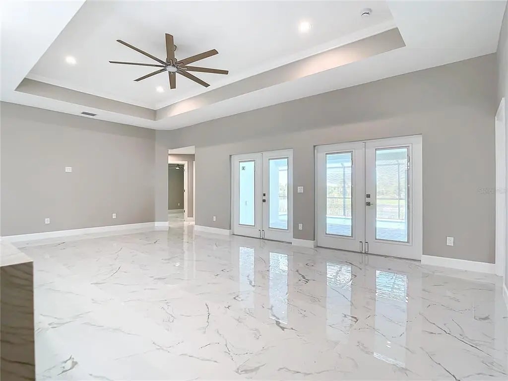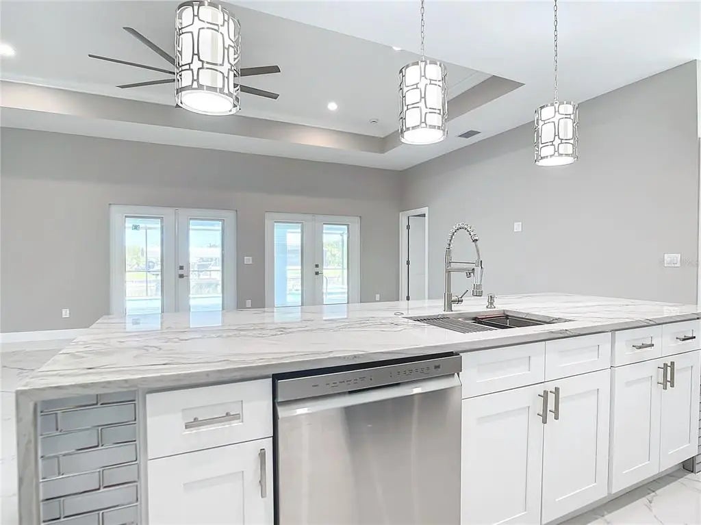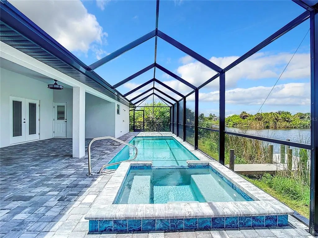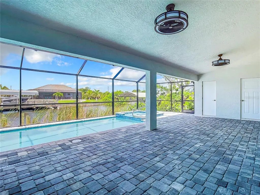 NO BRIDGES TO THE OCEAN. SAILBOAT ACCESS. New, never lived in. 3 CAR GARAGE. Heated saltwater pool with attached spa. Heated outdoor shower with half bath on the Lanai near the pool. FISH from your private dock. Dual walk in closet in the master suite and private exit to the pool and lanai area from the primary suite. Toilet is separate from the remainder of the bath in the master suite. The kitchen features a waterfall granite island that is 12 feet long and can accomodate 6 diners for casual dining or breakfast. Dual overhead fans on the lanai and one or more foverhead fans in each interior room. A separate dining room tha is large enough to become a fourth or fofth bedroom as the GREAT ROOM is sufficient size to be a living dining area. THE HUGE LANAI is larger than most greatrooms and could easily become an enclosed game room if desired. Preconstruction appraised for $900,000. Seller wants a quick sale and has priced the house accordinly.