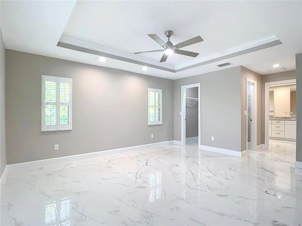 - Interior FeaturesCeiling Fan(s), Coffered Ceiling(s), Crown Molding, Dry Bar, High Ceilings, Kitchen/Family Room Combo, Living Room/Dining Room Combo, Primary Bedroom Main Floor, Solid Surface Counters, Split Bedroom, Stone Counters, Thermostat, Tray Ceiling(s), Walk-In Closet(s), Window Treatments
