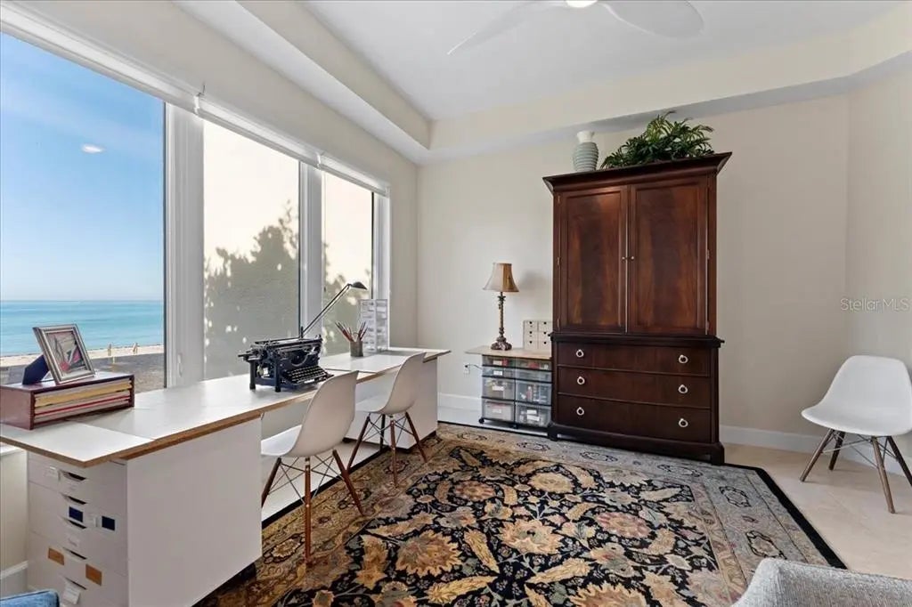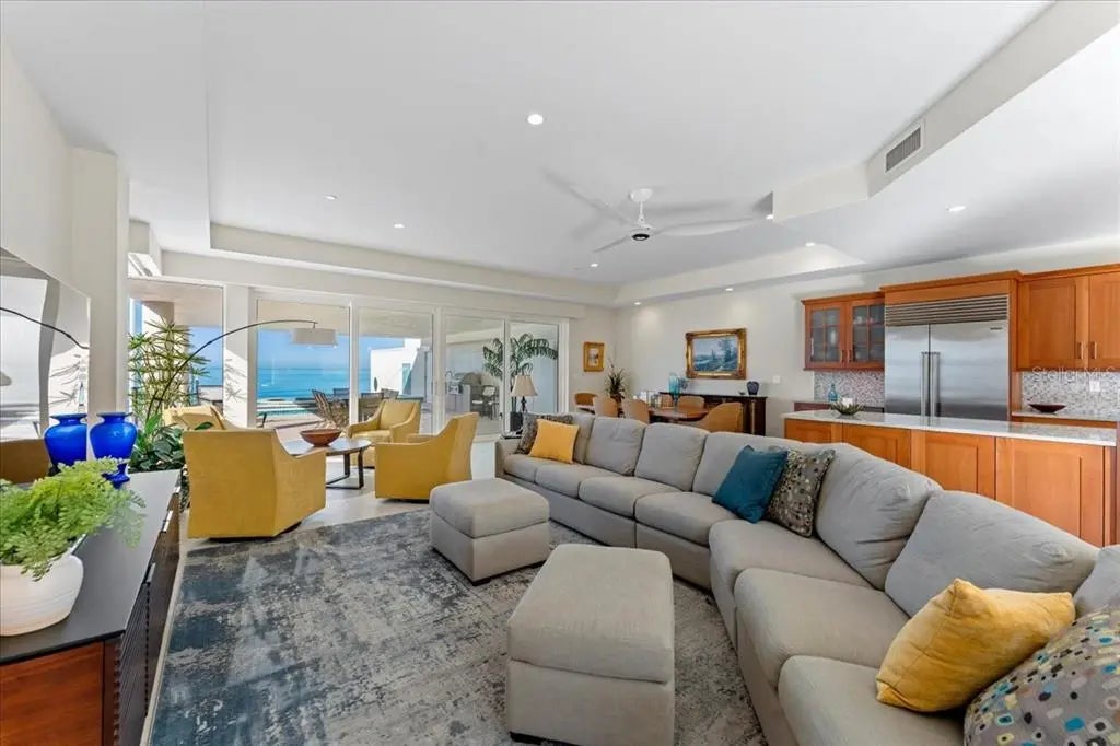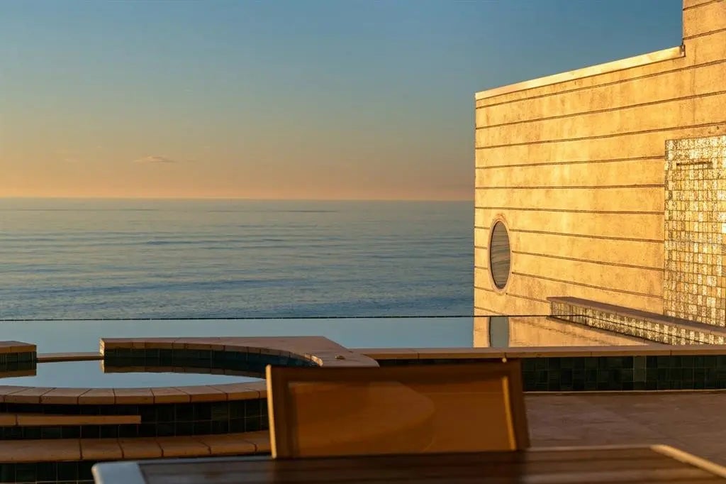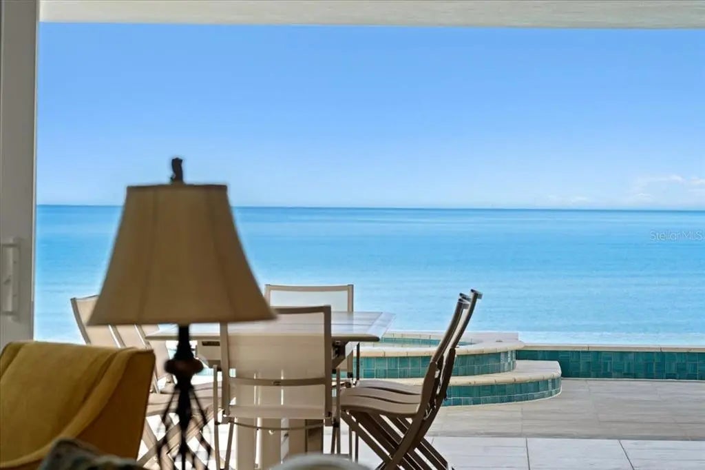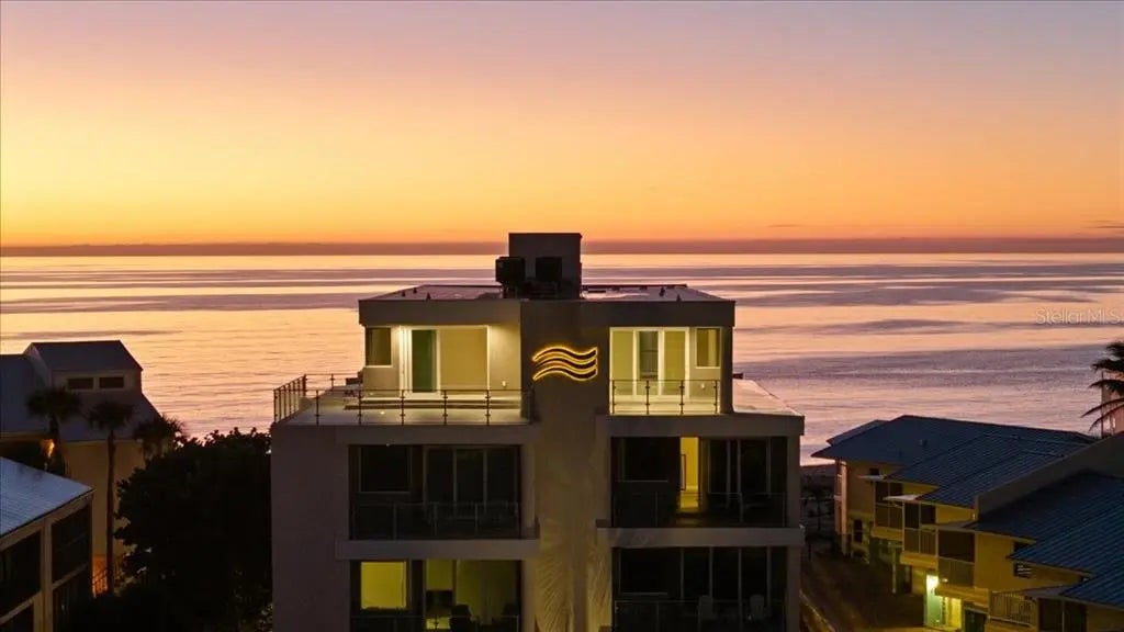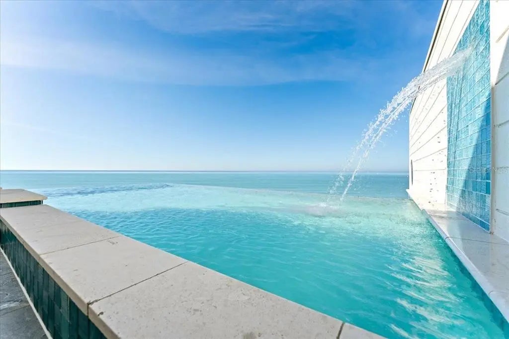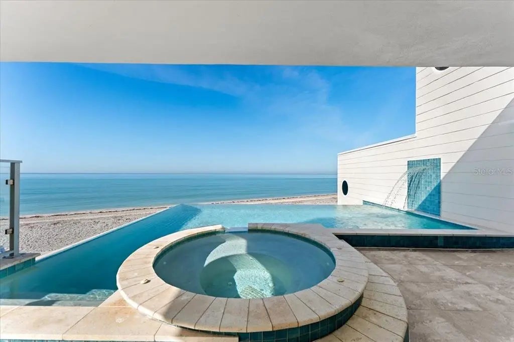 Welcome to The Waves of Manasota Key, a striking modern coastal condominium where contemporary architecture meets effortless luxury. Clean lines, stacked balconies for enhanced privacy, and expansive glass railings maximize natural light and indoor-outdoor living, allowing you to fully embrace the breathtaking views. This one-of-a-kind building offers the rare luxury of enjoying both sunrise and sunset from your own home. Begin your mornings on the east-facing primary bedroom balcony with serene bay views, and end your evenings watching the sun melt into the Gulf from your west-facing terrace overlooking the private pool and spa that dramatically cantilevers over the pristine waters of Englewood Beach. The glowing oranges and pinks of each sunset feel like a living work of art. Arrive via private elevator entry and step into an elegant coastal retreat where water views greet you from nearly every room. The open-concept living space is anchored by a beautifully designed gourmet kitchen featuring warm custom wood cabinetry, sleek stone countertops, and a generous center island with bar seating — ideal for entertaining. High-end stainless steel appliances, including a built-in wall oven and professional-grade refrigerator, are complemented by a contemporary glass tile backsplash and thoughtfully designed lighting that enhances both form and function. The living area flows seamlessly to the west-facing terrace, where your private infinity-edge pool and spa hover above turquoise Gulf waters — making sunset your favorite daily ritual. Steps lead directly down to the beach, where soft sand and gentle waves await just outside your door. Manasota Key is a charming barrier island offering a relaxed coastal lifestyle with waterfront dining, boutique shopping, and vibrant sunset entertainment. Whether enjoying fine dining or a casual evening by the water, this island community delivers a truly exceptional lifestyle. This luxurious residence features three spacious bedroom suites, each with a private bath, a guest powder room, over 3,000 square feet of living space, and a private garage. With low-maintenance living and unparalleled design, this is a rare opportunity to own a truly extraordinary coastal condominium.