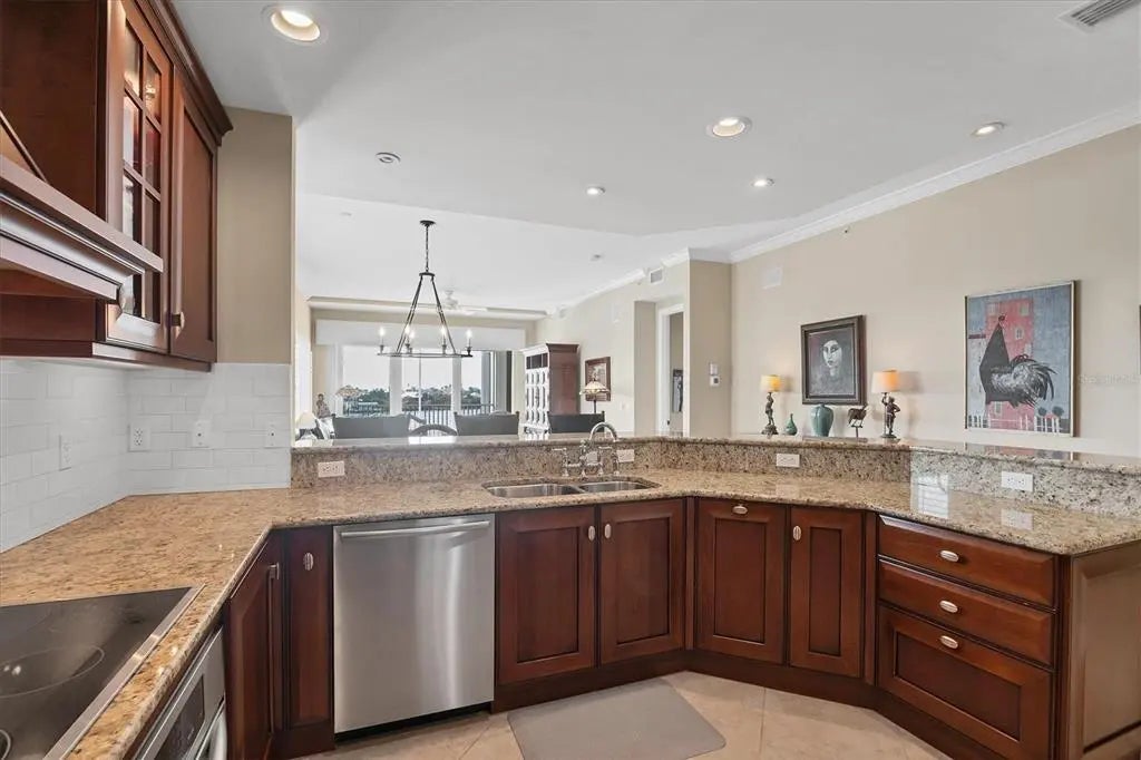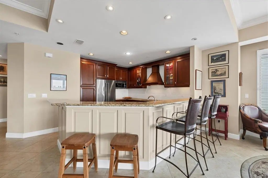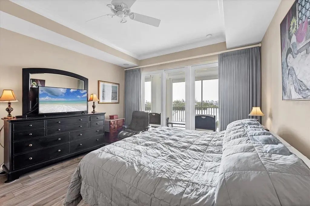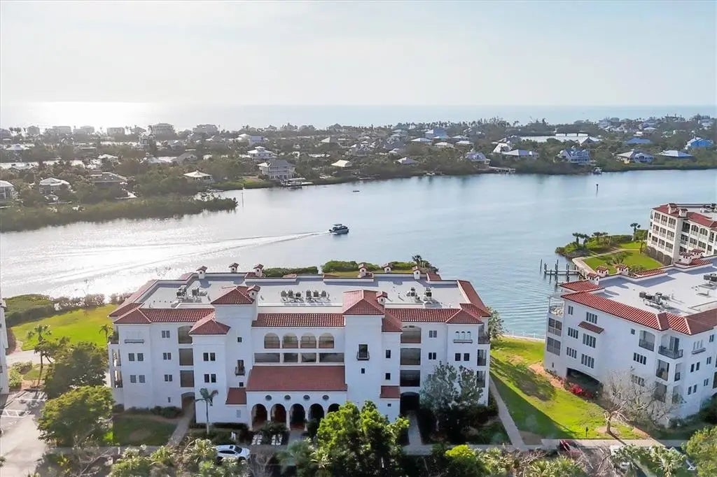 This exceptional corner property, located on the third floor, offers a luxurious living experience with breathtaking views of the Intracoastal Waterway. Designed by a professional interior designer during its original construction, the home spans nearly 2,000 sq.ft. under air, featuring 3 bedrooms, 2.5 baths, a large 400 sq.ft. screened lanai, and a charming terrace accessible from both guest bedrooms. With a southern and western exposure, the residence is bathed in natural light from the dozens of impact-resistant Andersen casement windows and glass sliders that showcase panoramic water views. Inside, the home boasts soaring 10-foot ceilings, 8-foot solid core doors, and an expansive open-concept dining and living room area that seamlessly flows into the kitchen. The fully integrated design enhances the open feeling, allowing views and light to pour throughout the space. The kitchen is equipped with top-tier features, including custom Italian LUBE cabinetry, level 5 stone countertops, high-end appliances such as a Bosch dishwasher, newer KitchenAid refrigerator, and electric roll-down storm shutters on the lanai. Additional luxury elements include crown molding, 18" tile floors, custom plantation shutters, and sophisticated drapery throughout. The spacious primary suite is a serene retreat, featuring a large bedroom, walk-in closet, and a luxurious bath with a custom-built linen chest and stunning lake rock stone countertops. The unit is also equipped with a high-end fitness center and exclusive amenities such as two resort-style pools, a spa, a waterfront clubhouse, a fenced dog park, fishing pier, day dockage, pickleball and tennis courts, and beautifully landscaped grounds spanning 23 acres with paver sidewalks. Residents enjoy close proximity to a full-service marina, excellent shopping and dining options, historic Boca Grande, pristine beaches, golf courses, and immediate access to world-class fishing and boating. A truly unparalleled opportunity for luxury living in a vibrant, tropical setting.
